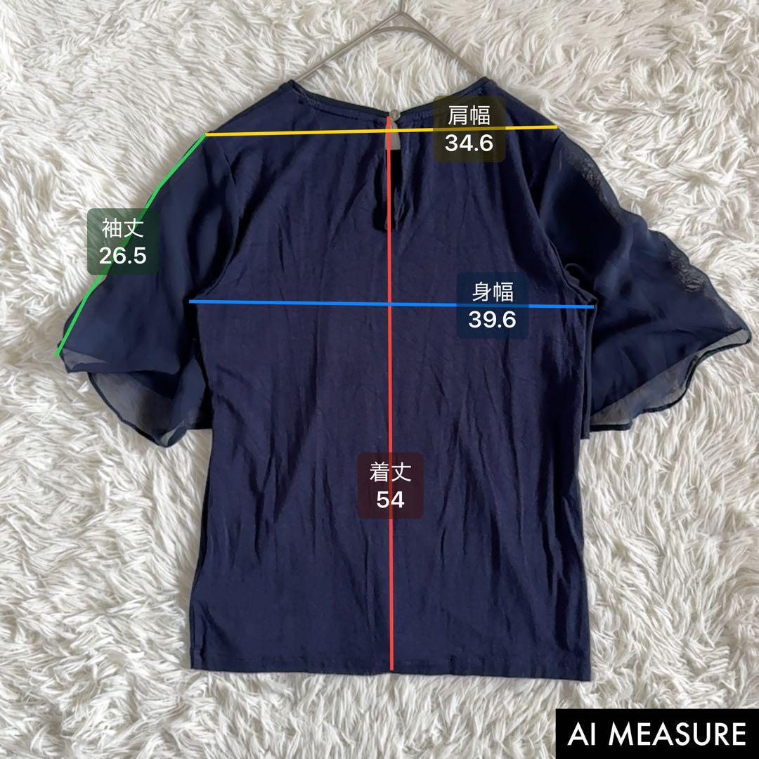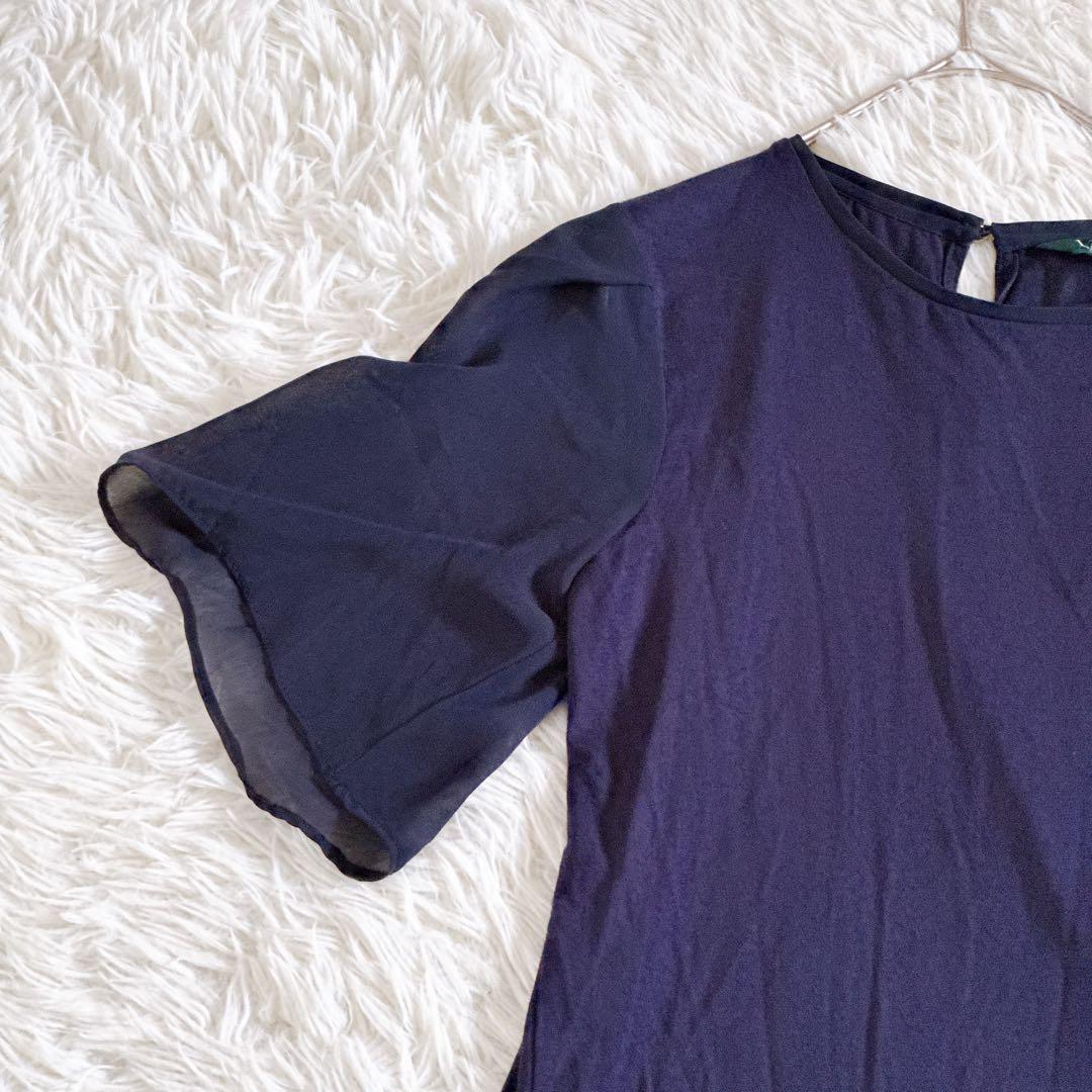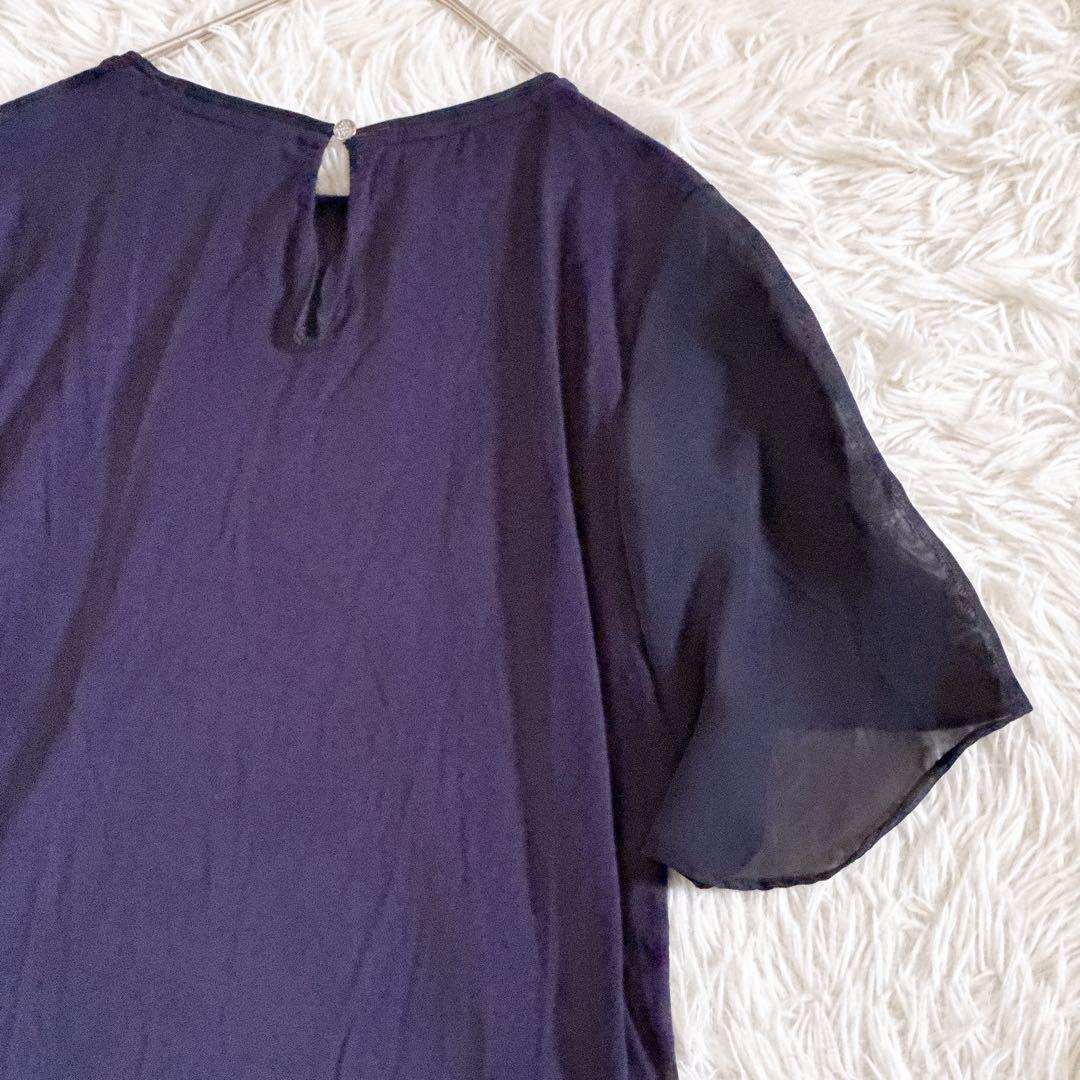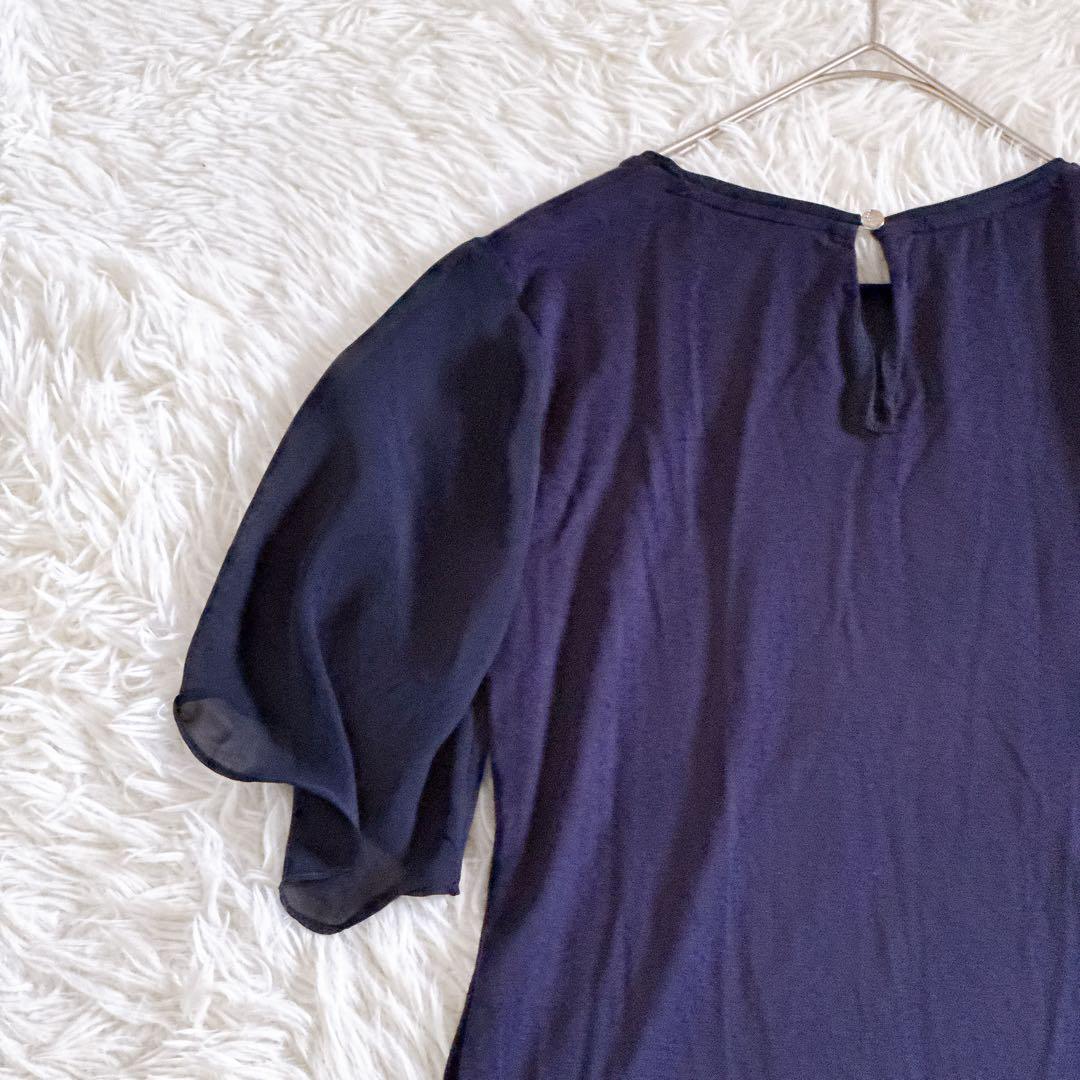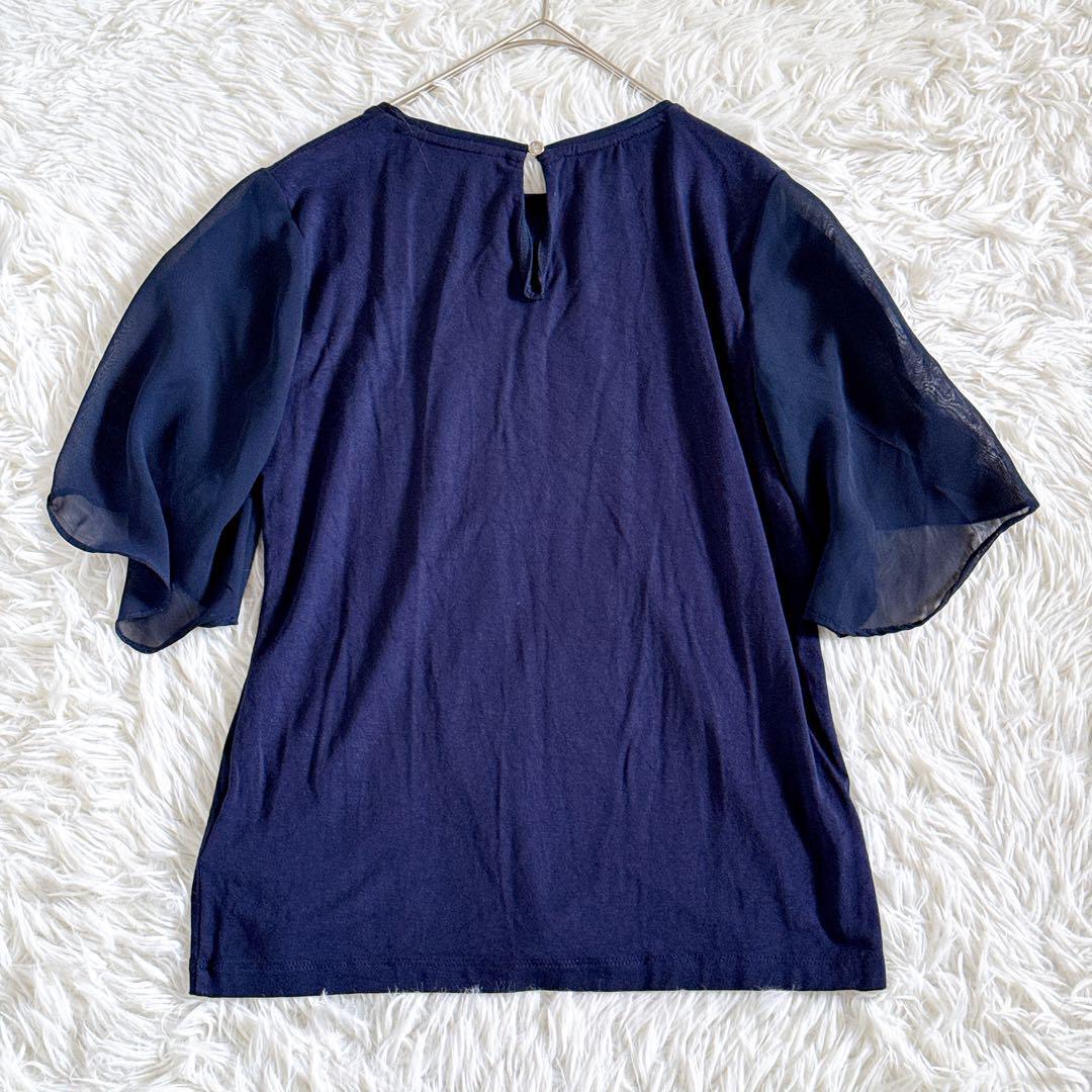 身頃はしっかりとしたカットソー素材、袖は透け感のある軽やかなシフォン素材で切り替えられており、二の腕をふんわりカバーしながら女性らしい抜け感を演出します。