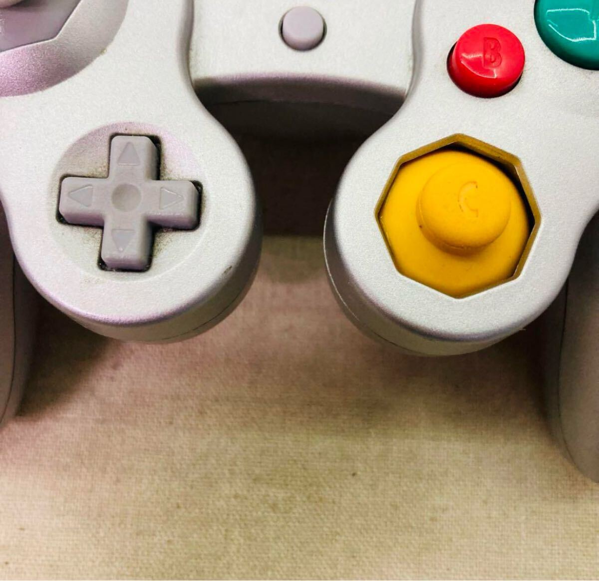 ■商品説明: Nintendo / 任天堂 Game Cube / ゲームキューブ コントローラ 後期型 シルバー ■商品状態: 品物は写真に写っているものが全てとなります。 ※撮影用の備品は付属しません。 こちらは下記の動作を確認しております。 ・ゲームキューブに繋いで全てのボタンが動作することを確認しております。 ・スティックのゴムの部分に汚れ付着やべたつき、使用中にできた傷などがあります。状態は写真にてご確認ください。 状態は写真にてご確認ください。 神経質な方や状態を極度に気になされる方、完璧を求める方の購入はご遠慮下さい。 落札後の品物に関するクレームは一切受け付け出来かねますので気になる部分がある場合は入札前にご質問下さい。 | ||