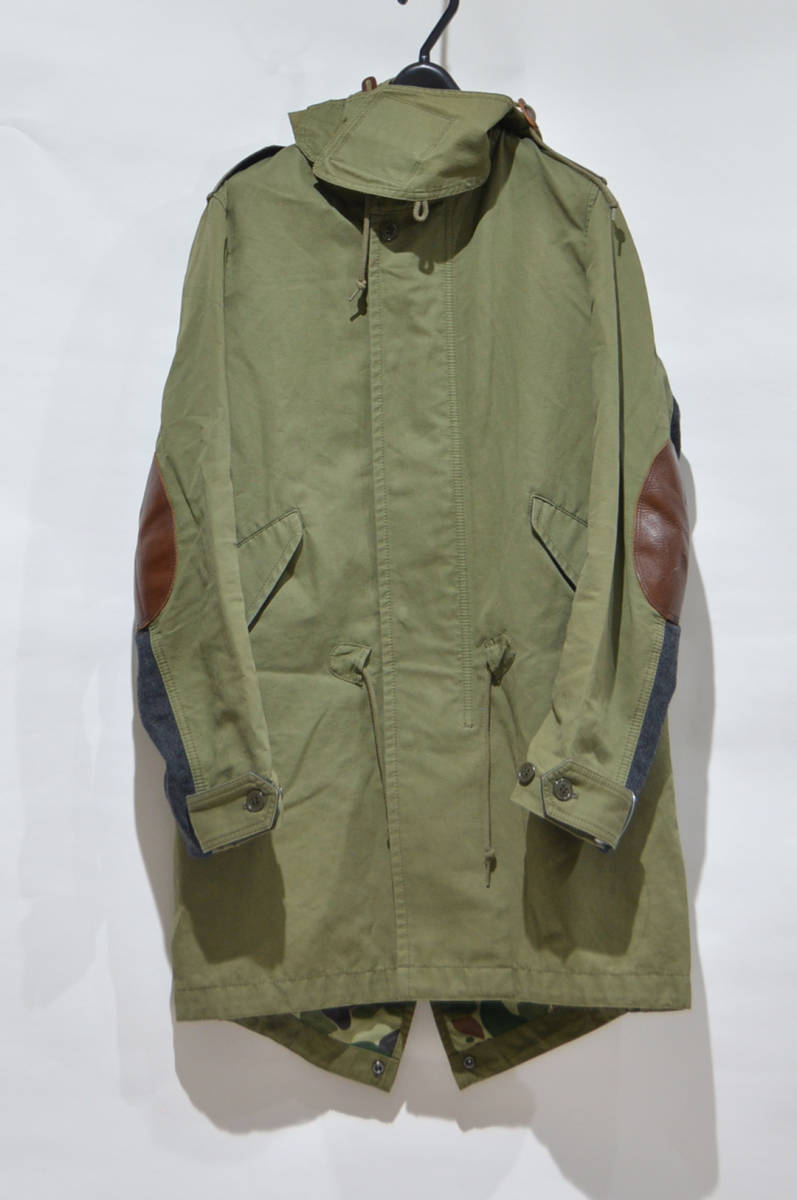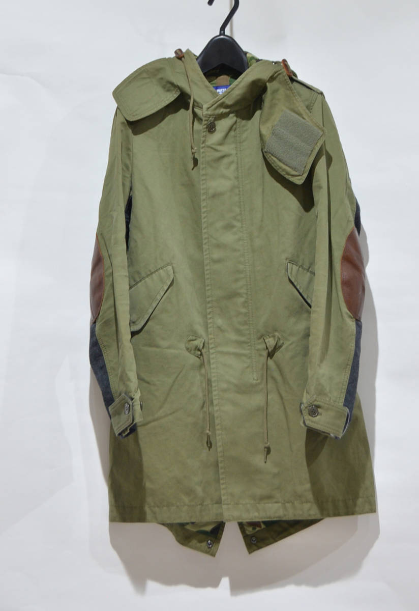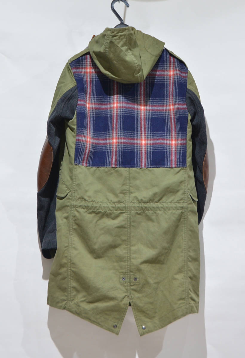 JUNYA WATANABE COMME des GARCONS MAN ジュンヤワタナベ コムデギャルソン マン パッチワーク切替 モッズ コート オリーブ XS Y-316592