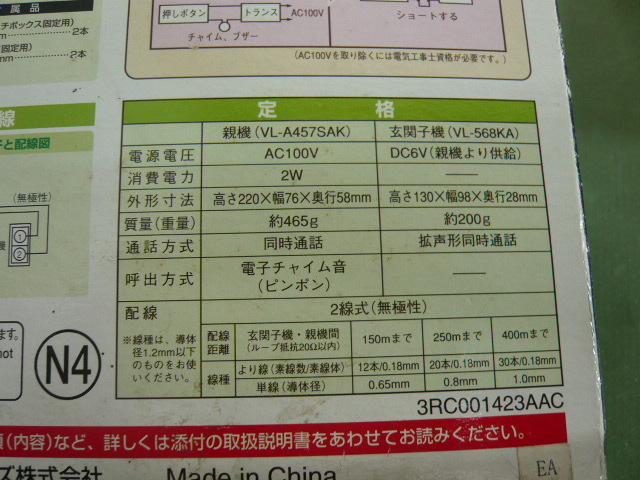 A252◆Panasonic インターホンセット VL-A157SAKP◆未使用保管品◆Y