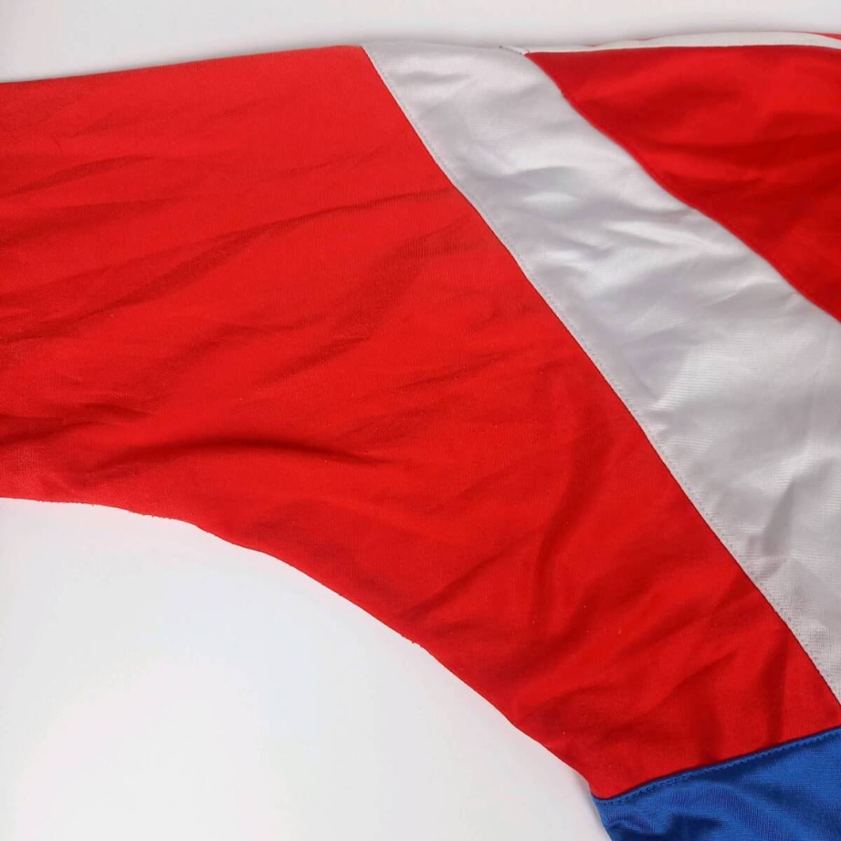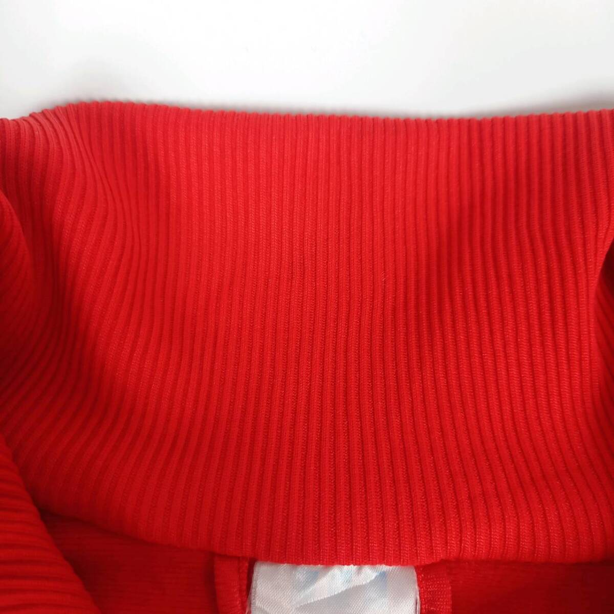 前身頃中央に糸の引きつりあり、襟内側に汚れあり