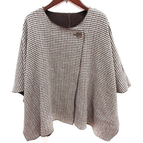 リエディ Re:EDIT ポンチョコート 総柄 M 茶 ブラウン アイボリー /RT レディース