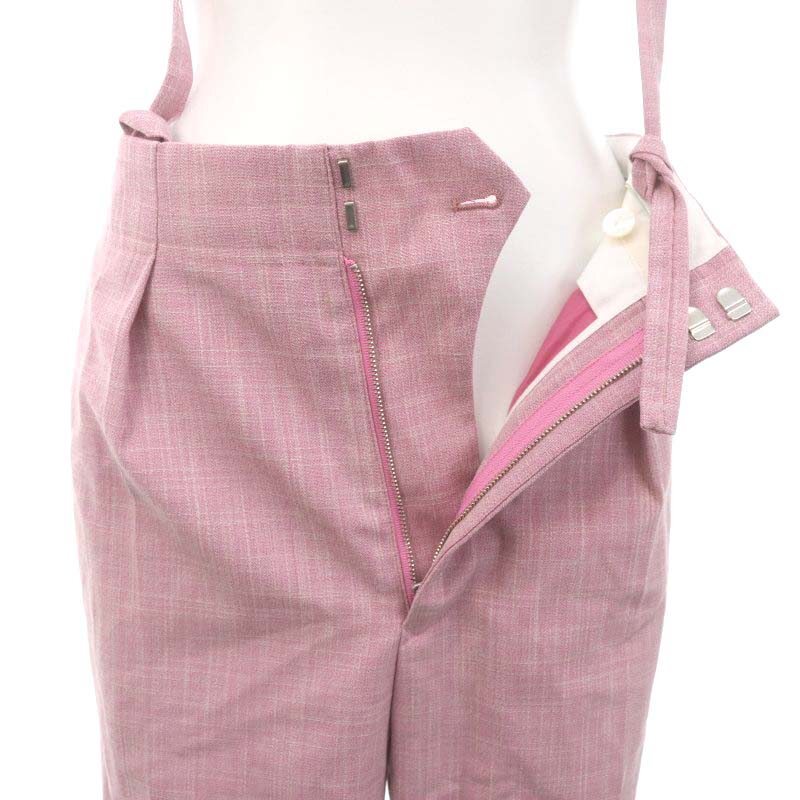 ドゥロワー Drawer 近年モデル ウールシルクメランジ サスペンダーパンツ ワイド タック 34 ピンク /HS ■OS レディース