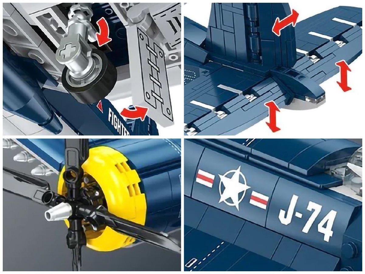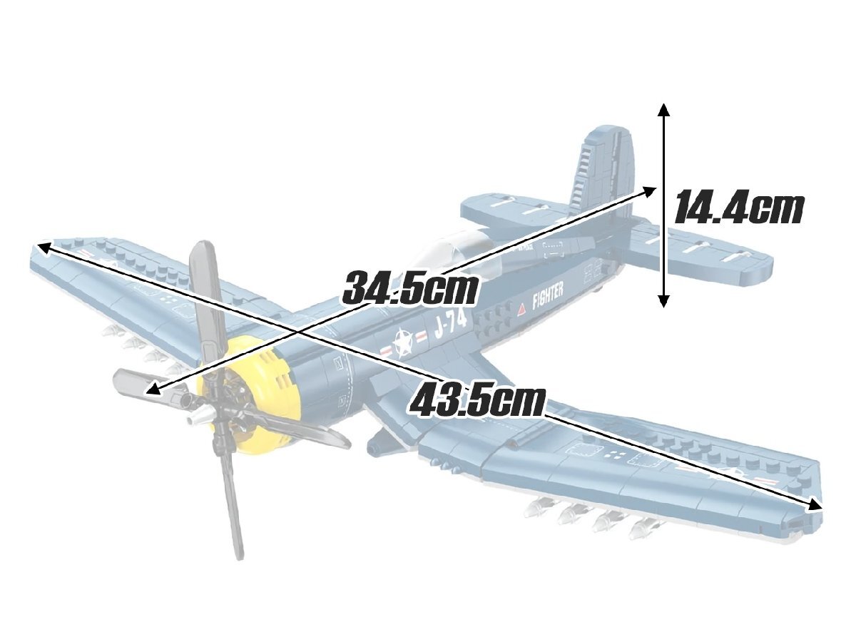 商品説明 ITEM INFO 多くの欠点を改良し続けた結果 傑作機にまで上り詰めたロングセラー戦闘機 AFM F4U コルセア 767Blocksです。 楽しく組み立てて、カッコよく飾れるAFM ブロックシリーズです。 WW2開戦以前から開発されつつも、投入当初は数々の不具合で一時は艦載機としては不適格とまで言われた当機は、様々な改良を施した結果、F/A-18が投入された79年まで正式採用されるロングセラー機まで上り詰めた名戦闘機です。 そんなロングセラー機、F4U コルセアを767個のブロックで構成されたキットで再現!ほどよい組ごたえでブロックビギナーやお子様でも制作しやすいキットになっています。 手動ながら完成後も楽しめる可動ギミックを搭載しています! 楽しく作れてインテリアとしてもグッド!ミリタリーマニアやブロック好きな方に是非! 商品基本情報・スペック ITEM SPEC ●商品名 : AFM F4U コルセア 767Blocks ●商品番号 : M0051J ●ブランド : AFM ●パッケージサイズ : 300mm×230mm×80mm ●完成サイズ(各部最大) : 約435mm×345mm×144mm ●素材 : ABS ●総ブロック数 : 767 ●対象年齢 : 15歳以上 注意事項 ITEM NOTE ∇商品固有の注意事項 ※小さなブロックが多く含まれています。誤って飲み込まないようにご注意ください。窒息などの危険があります。 ※誤飲の危険がありますので対象年齢を守り、15歳未満のお子様には絶対に遊ばせないでください。 ※当商品はレゴ(LEGO)商品ではございません。 ※弊社取扱商品以外への互換性はありませんのでご了承ください。 ∇ご購入時の留意事項 ※商品はすべて点検してからのお届けになります。商品によってはパッケージの開封等を行う場合もございますことをご了承ください。 ※商品には万全を記しておりますが、万一不備な点がございましたら、お手数ですがお問い合わせフォームにてご連絡頂ますようお願い致します。なお、海外製品につきましては、輸入時についた若干の傷、痛み等が見られる場合がございます。 国内製品のような完全品をお求めの方はご遠慮下さい。 ※商品が適合外であった場合、またはお客様都合による交換・返品・返金は出来ません。よくお確かめの上、ご購入下さい。 ※モニター環境により、実際の商品の色と若干異なる場合がございますのでご了承下さい。 ※他サイトでも同時販売の為売り切れの際はご了承下さい。 ※売り切れの際は早急にご連絡させて頂きます。(当社休業日を除く) 関連商品 RELATED ITEM