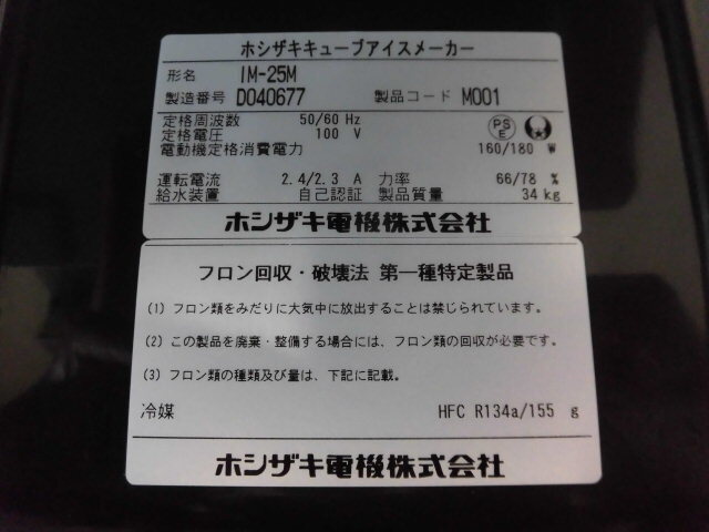 中古厨房 ホシザキ 業務用 全自動 製氷機 キューブアイス IM-25M 100V