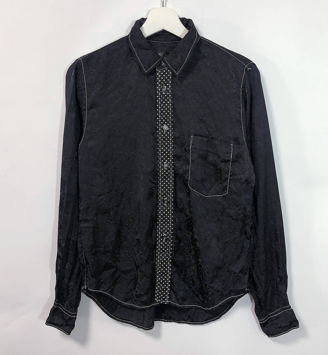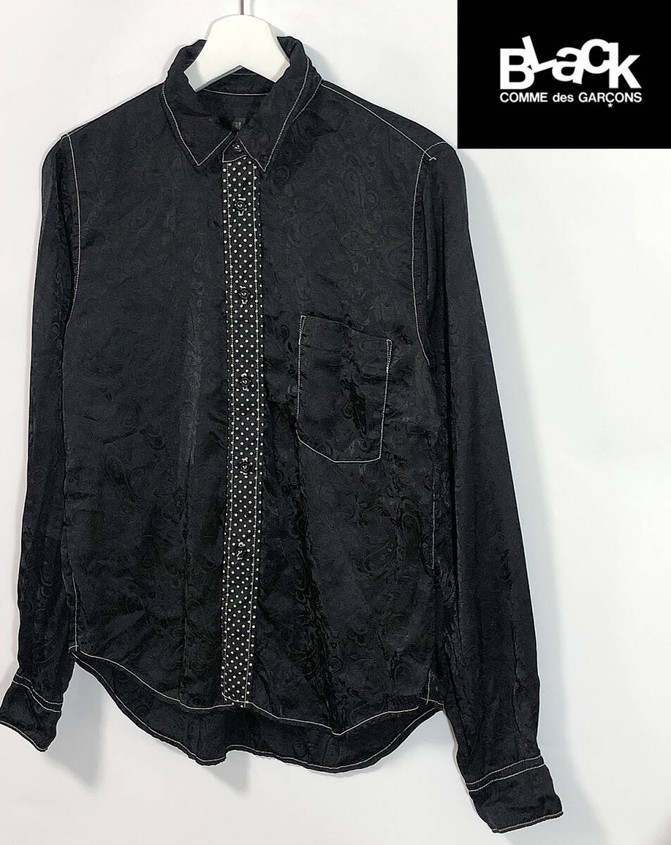 人気/希少■12AW/BLACK COMME des GARCONS Paisleydot switching shirts■ブラックコムデギャルソン ペイズリー柄 ドット切替 長袖シャツ■