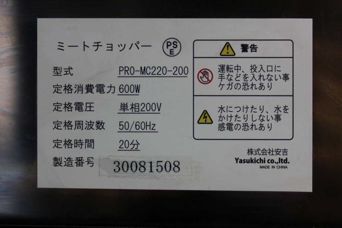株式会社安吉 ミートスライサー  ミートチョッパー PROMC220-200 200V 2011年 200V KIPROSTAR