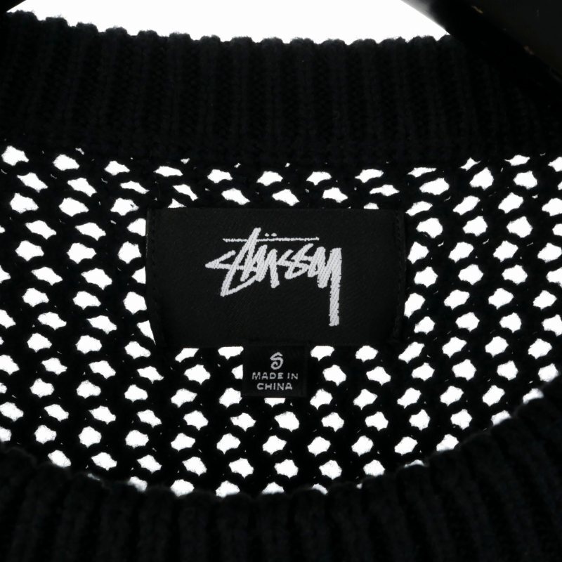 ステューシー STUSSY セーター ピグメント ダイ ルーズ メッシュ ゲージニット コットン S ブラック 黒 メンズ