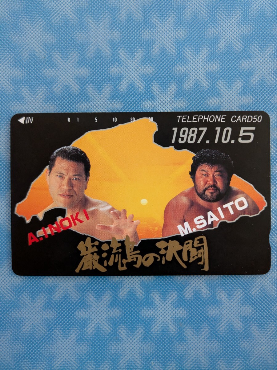 アントニオ猪木vsマサ斎藤 巌流島決戦のテレホンカードです。
