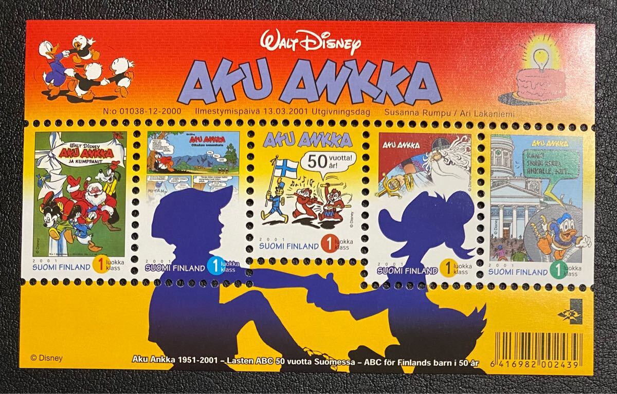 フィンランド コミックドナルドダック フィンランド発刊50年 ディズニー 小型シート1種完 未使用 NHです。