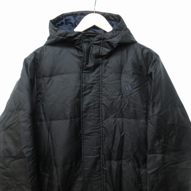 アディダス adidas ダウンベンチコート ロング サッカーウエア フード ロゴ刺繍 ナイロン 黒 ブラック Mサイズ
