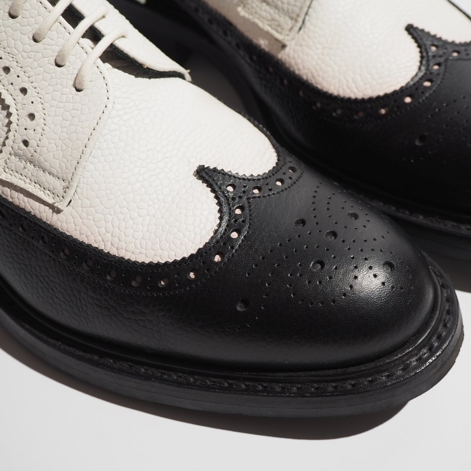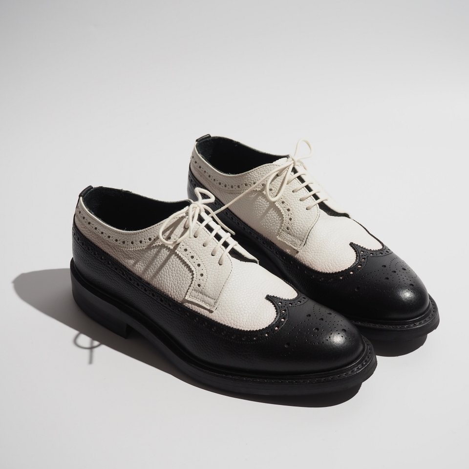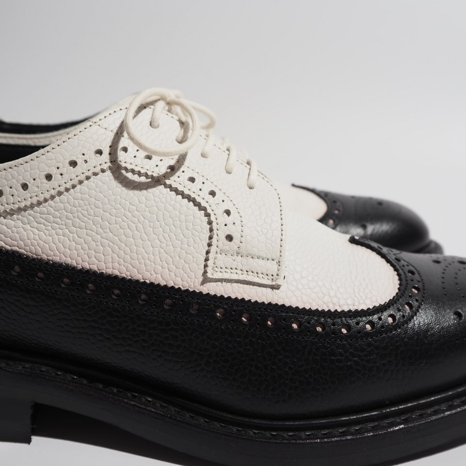 YELVERTOFT コンビ/バイカラーグレインレザー ロングウィングチップシューズ ホワイト×ブラック 7/26cm