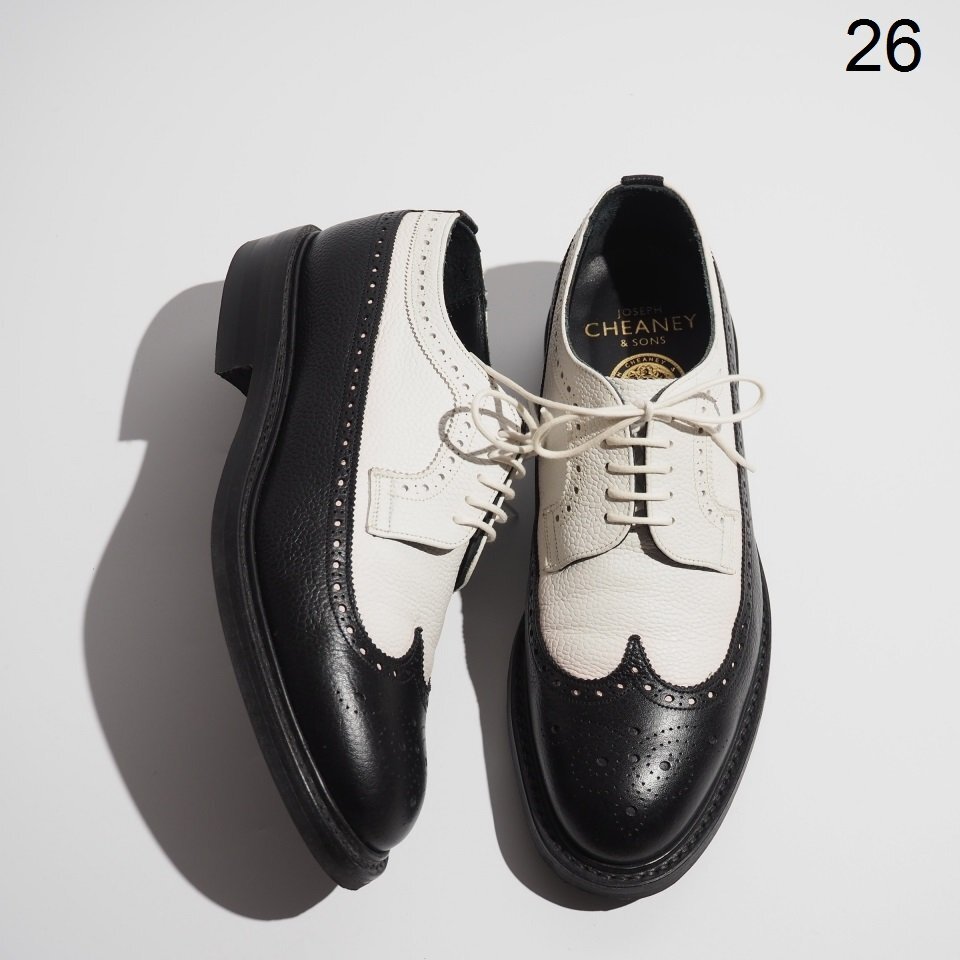 P4165P ▼JOSEPH CHEANEY ジョセフチーニー▼ YELVERTOFT グレインレザー ロングウィングチップシューズ ホワイト ブラック 7/26cm rb mks