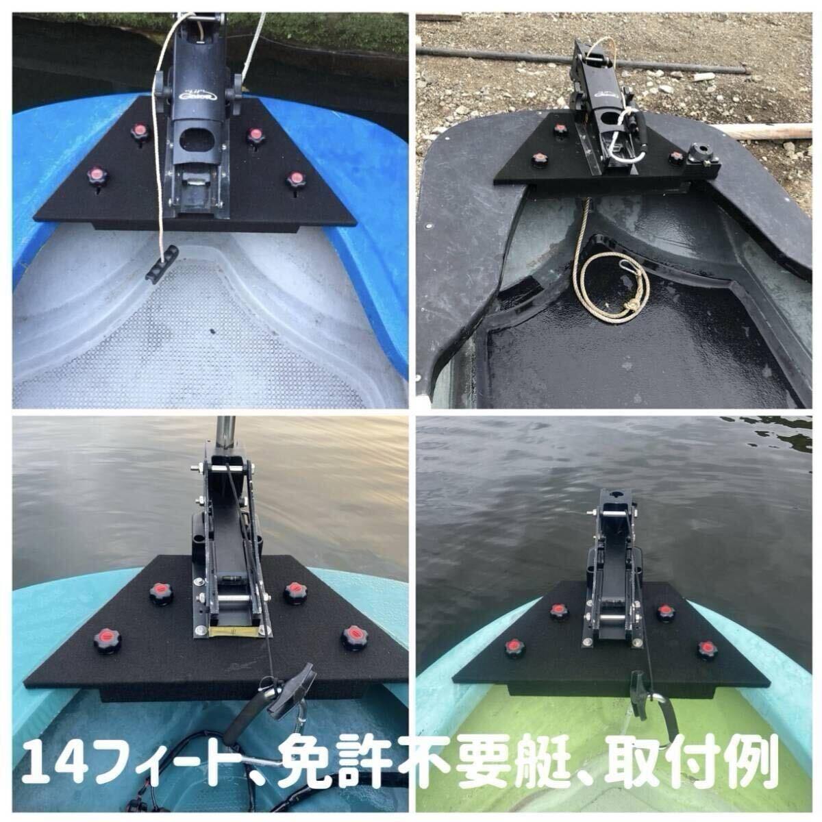 | マウントは21スプリングゲーター、16リトルゲーター、01、X5、X3、ミンコタエッジマクサム、デジストマウント、フォースに使われるクイックリリースマウント等、恐らく出回っているマウントは全て取付してきたと思います。 ゲーターフレックス360マウント等のそもそもショートにできないマウントは、マウントの穴を開け直す等すればつけれない事もないかもしれませんが、取付した事はありません。 ローボート、14フィート、免許不要艇等、ほぼ全てのボートで取付確認を取れております。 ボルトの長さは充分足りる長さにしていますが、 ごくごく稀に、上記のボートとは違う特殊なボートでボルトの長さが足りなかったり、逆に長すぎて船体に当たる場合もあります。 そのようなボートはほぼ無いのであまり考えなくても良いですが、 もし特殊なボートにつけたい場合は、ボルトとバウデッキの間に何かスペーサーを挟んだり、長さの違うボルトに交換すればご使用できるかと思います。 |