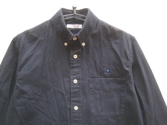 日本製!!ハリウッドランチマーケット H.R.MARKET*ロゴ・ラクダ刺繍 胸ポケット付き オックスフォードボタンダウンシャツ 1 実寸S ハリラン