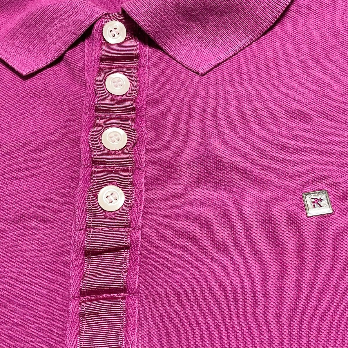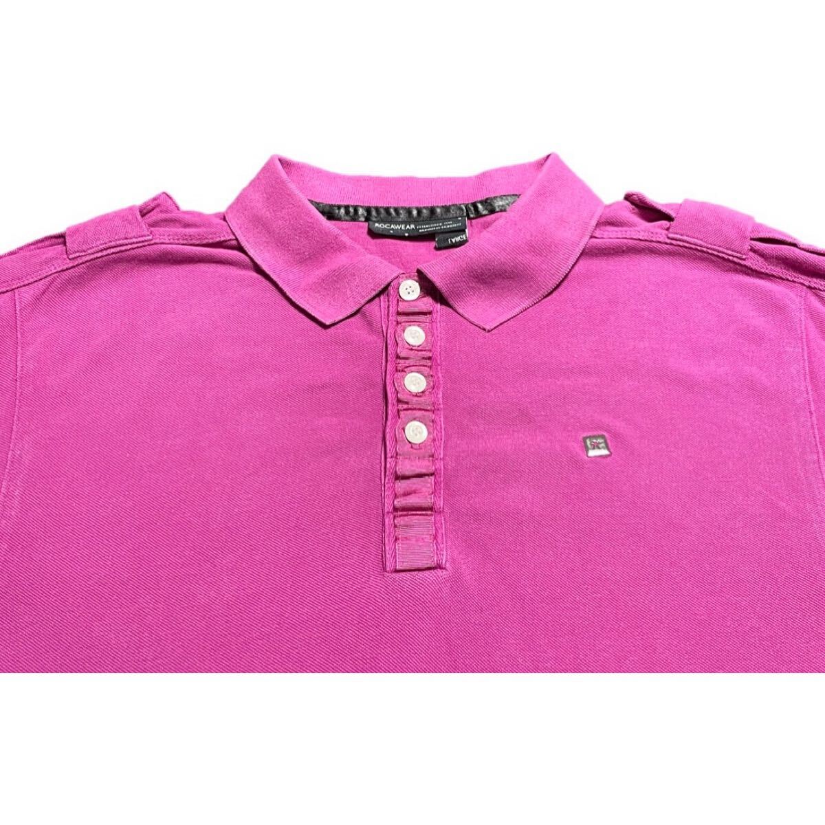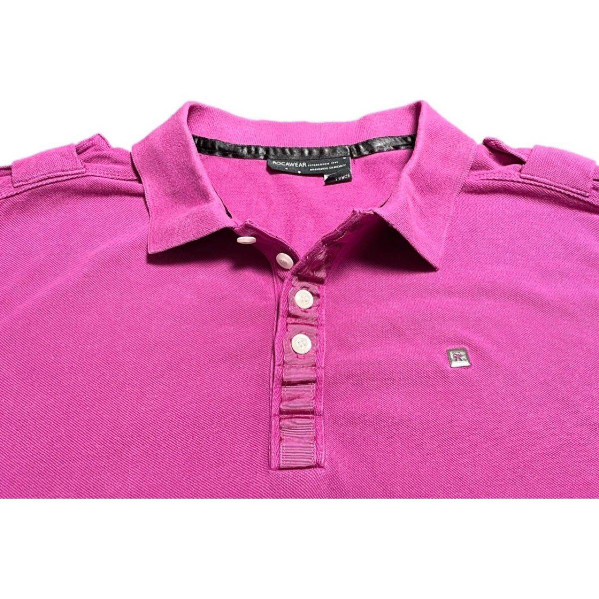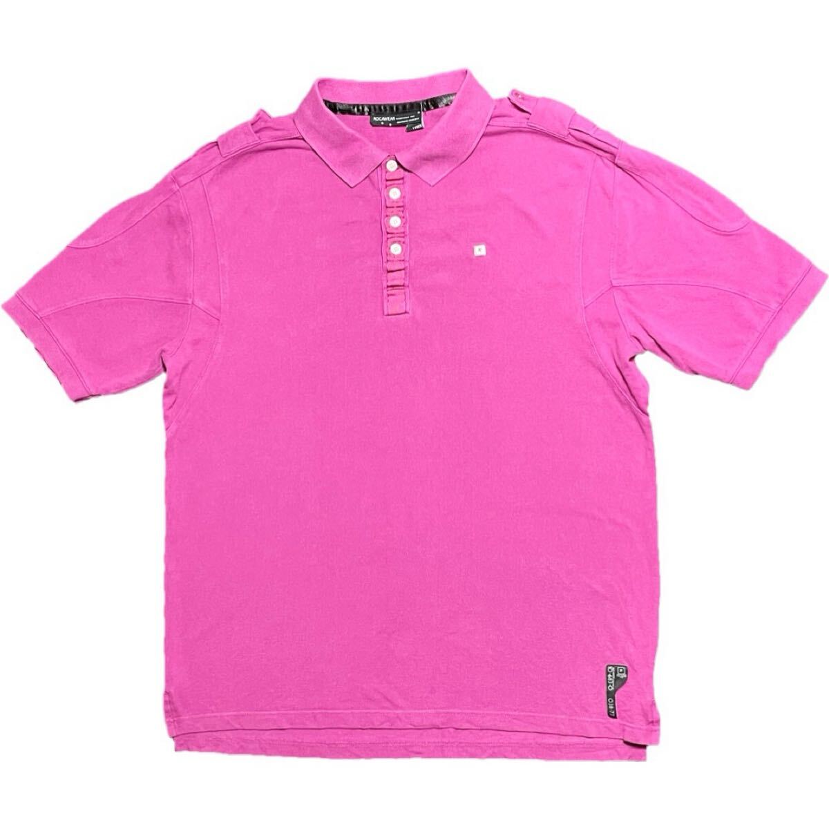 こちらはミリタリーシャツなどでよく見かける肩章、肩飾りのエポーレットが付いた珍しいデザインに、ピンクに近いパープル色がおしゃれなロカウェアの半袖鹿の子ポロシャツです。