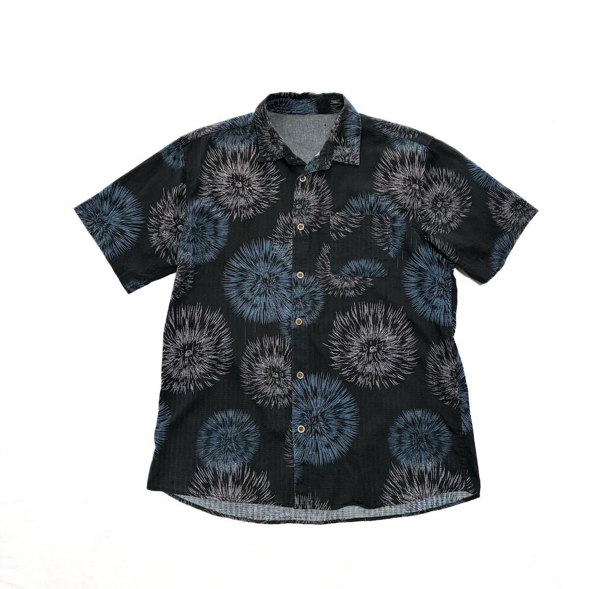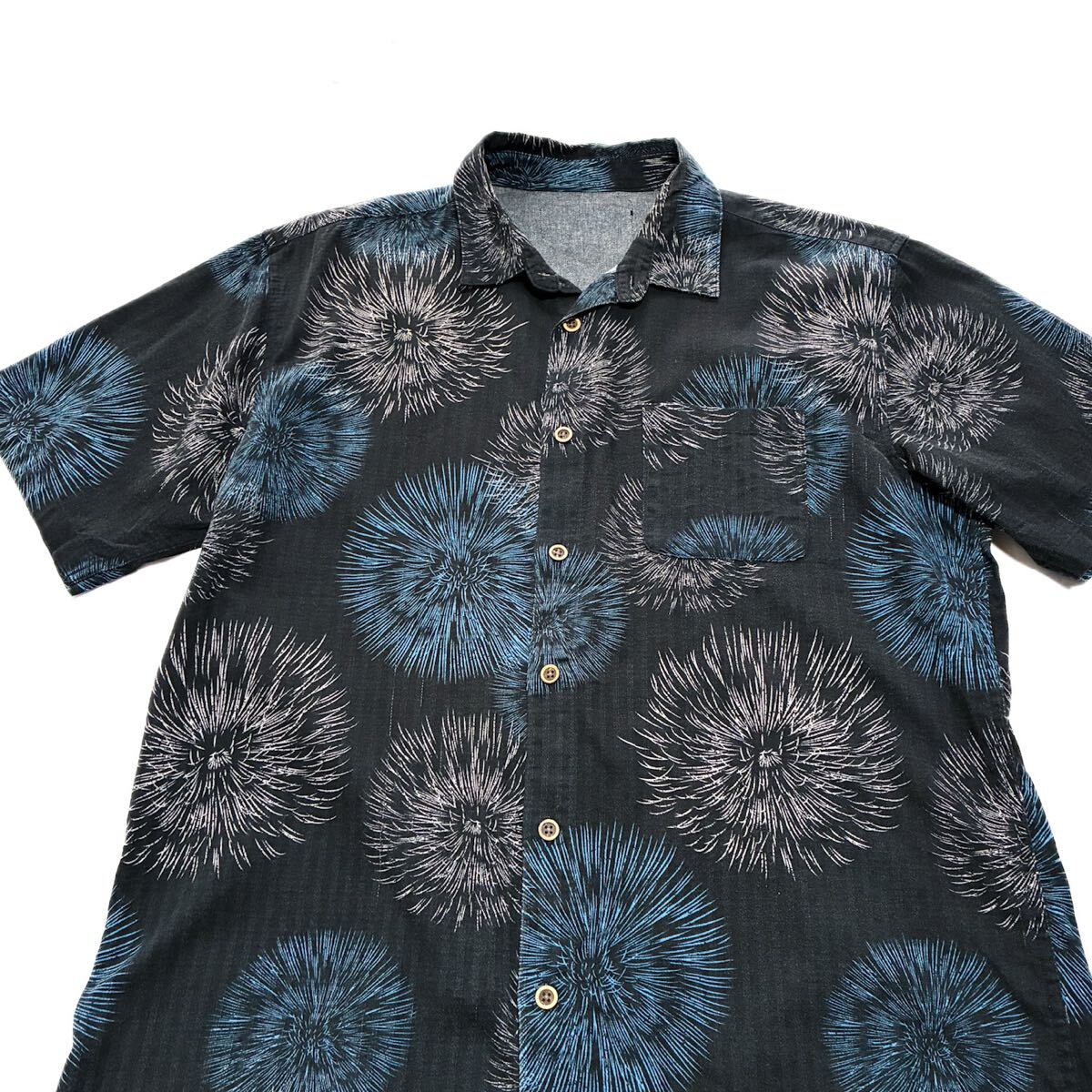 90s 花火 総柄 半袖シャツ アロハシャツ L〜XL相当 三尺玉