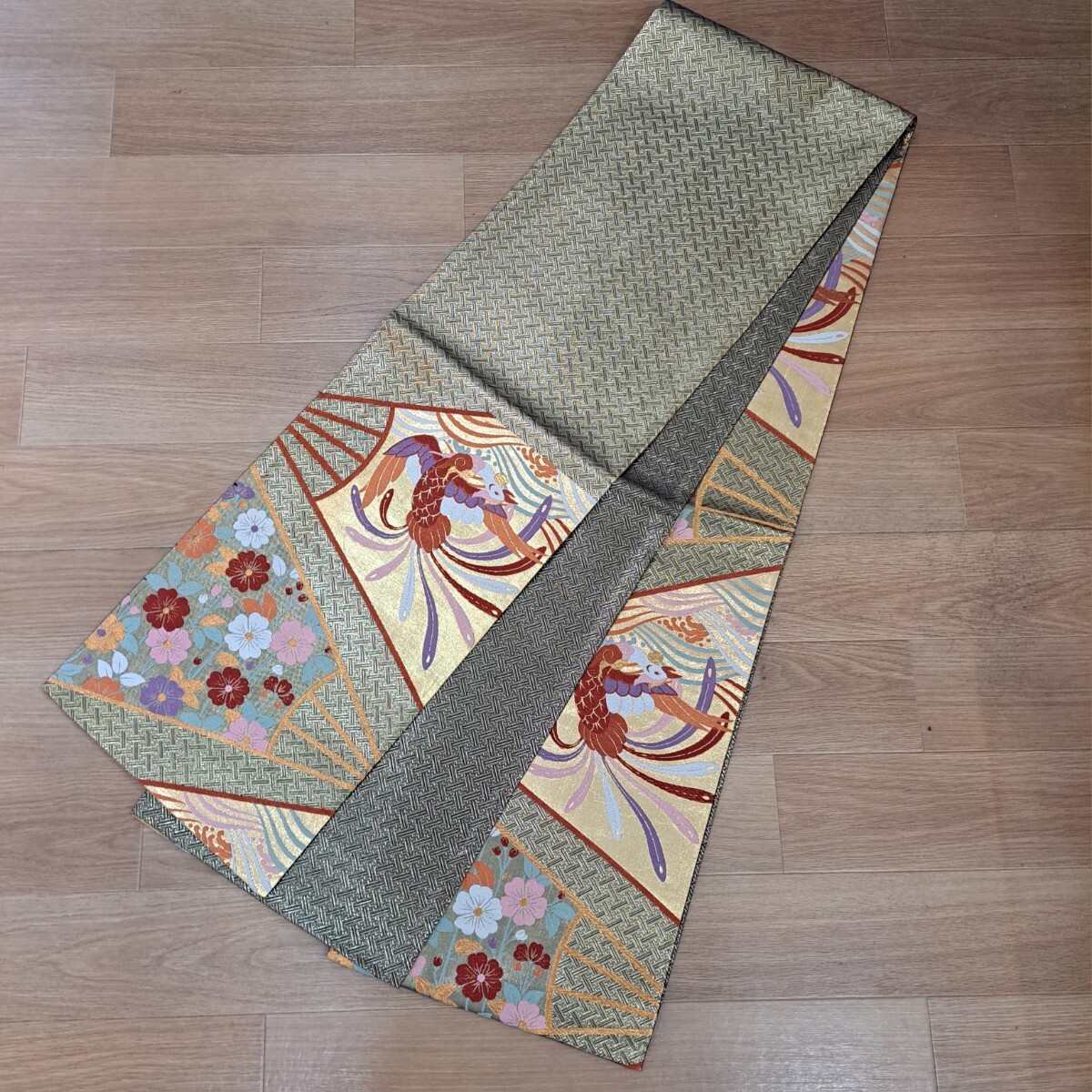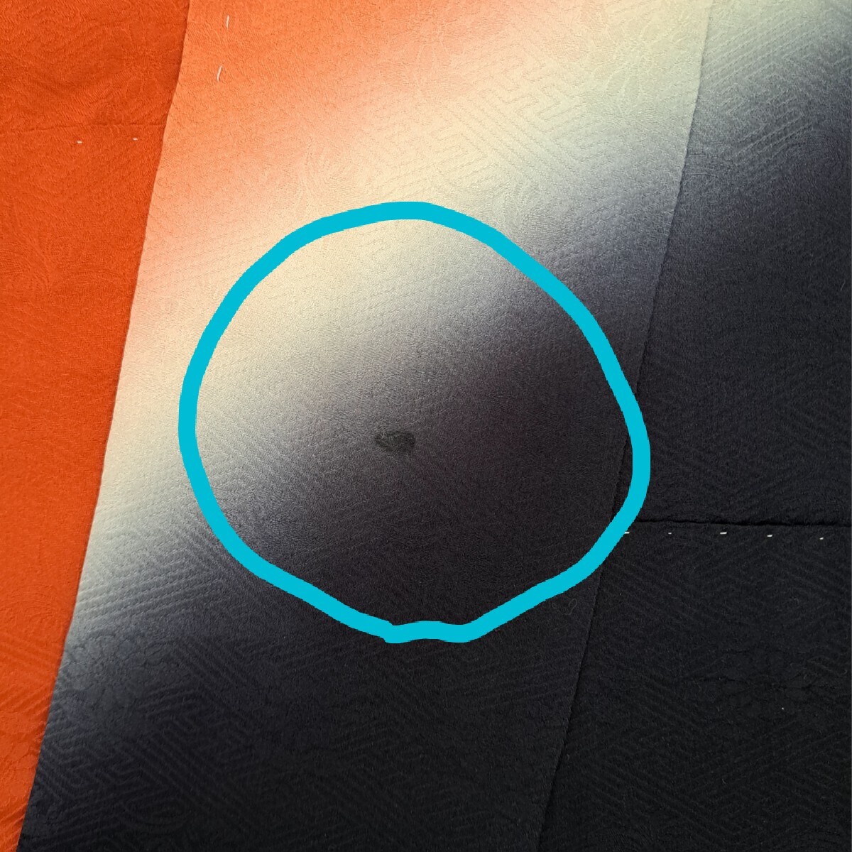 サイズは 身丈165cm 前巾42cm(衽幅も含め) 後巾31cm 裄70cm 袖巾35.5cm 袖丈104cm との事で、身長150~170cm位の方に合うそうです。