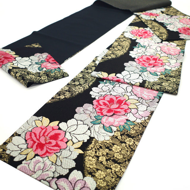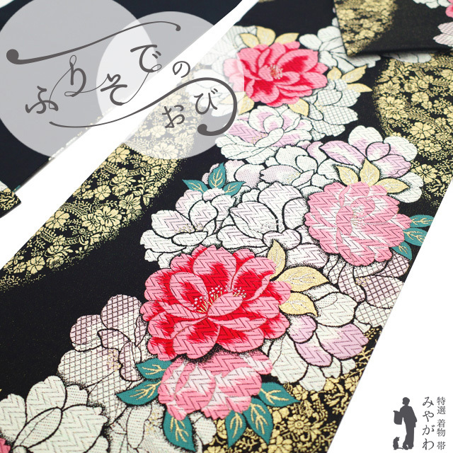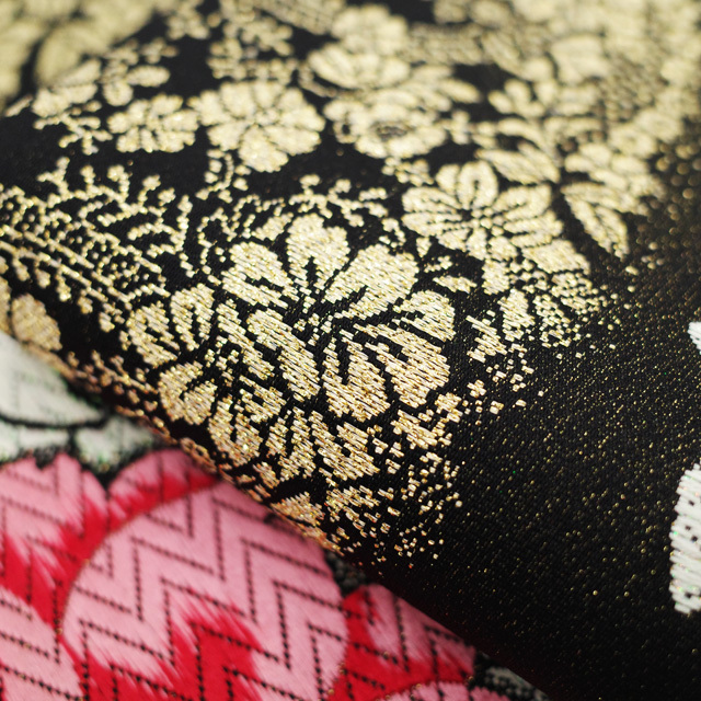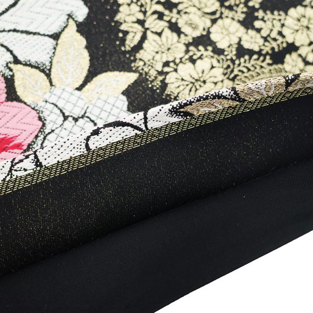 振袖用 袋帯 フォーマル リサイクル 振袖 成人式 結婚式 正絹 京都 西陣 金糸 黒 桜 さくら 花 中古 仕立て上がり みやがわ sb53996