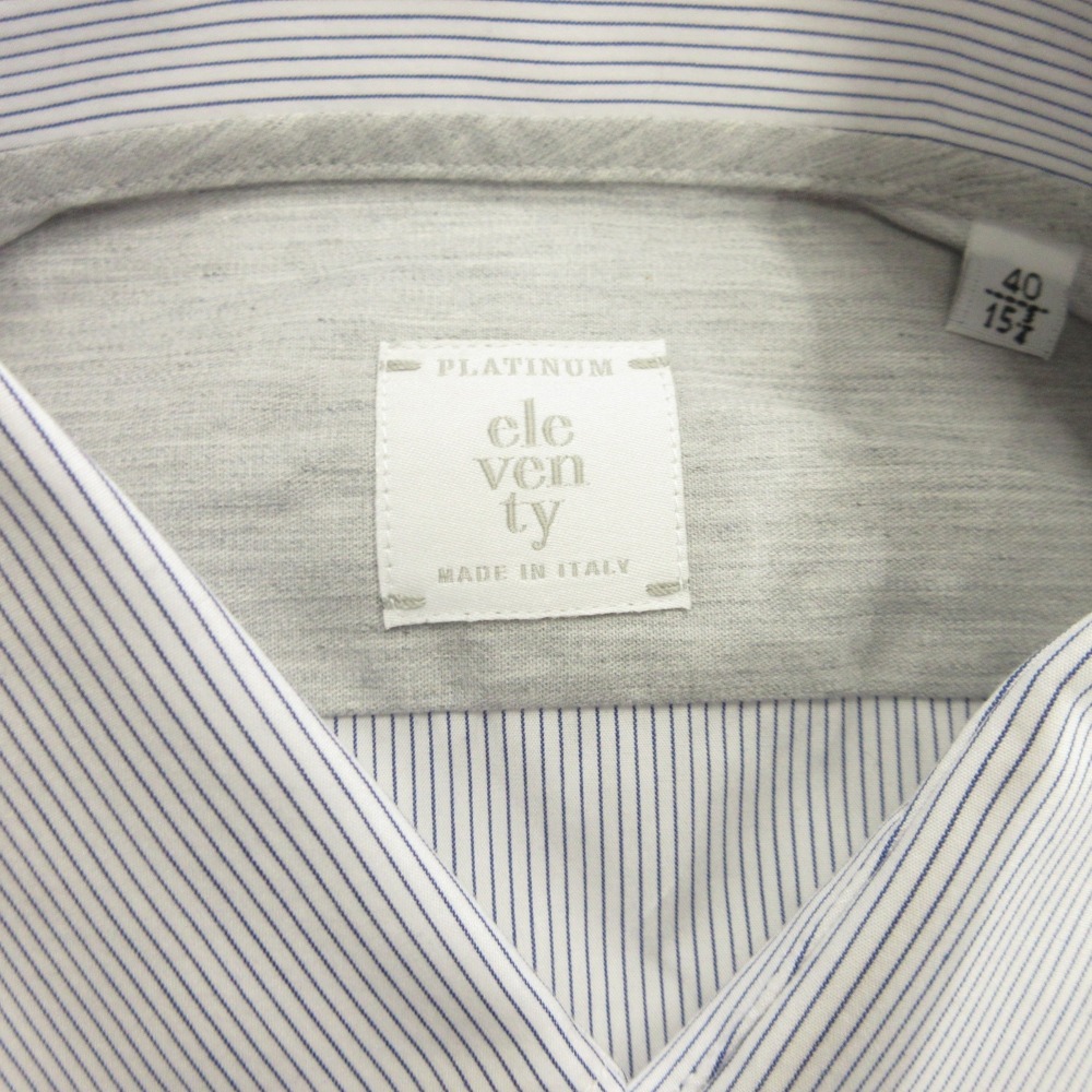未使用 eleventy PLATINUM イレブンティ プラチナム ホリゾンタルカラー ドレス シャツ カットソー ストライプ 40 15.5 ホワイト ブルー