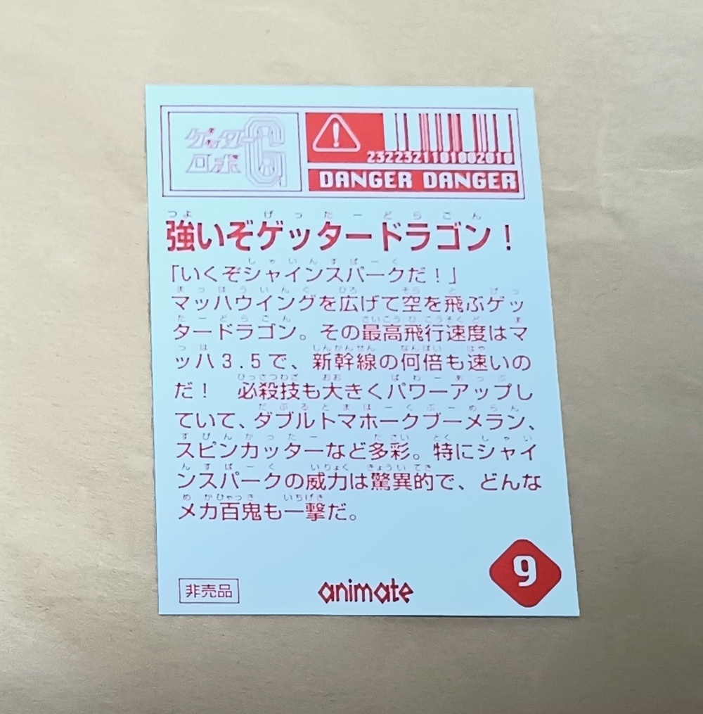 | 【ゲッターロボG ゲッタードラゴン No.9 トレーディングカード 】アニメイト配布 | |