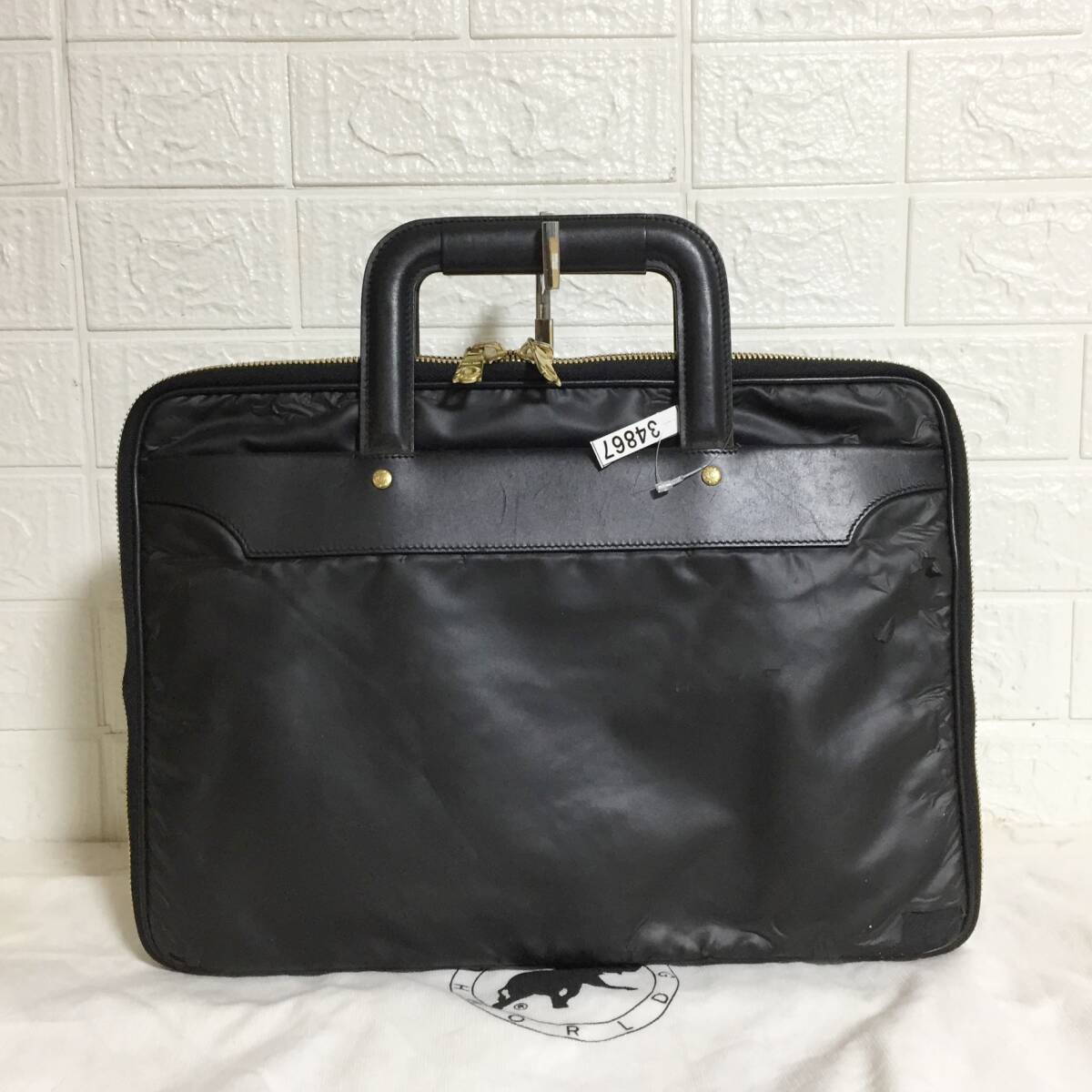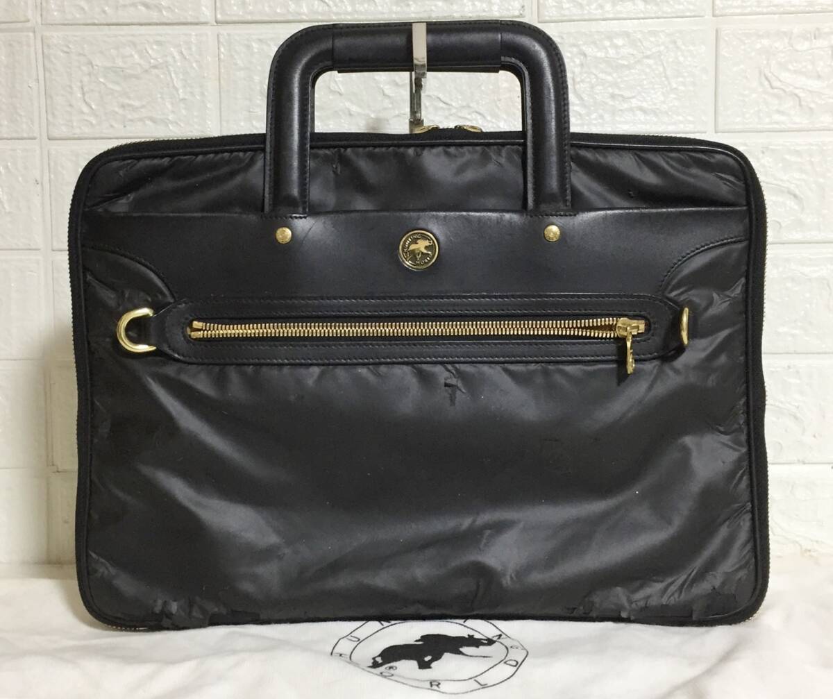 no34867 HUNTING WORLD ハンティングワールド 本革 レザー バチュークロス ハンド トート ビジネスバッグ 書類ケース ブリーフケース A4