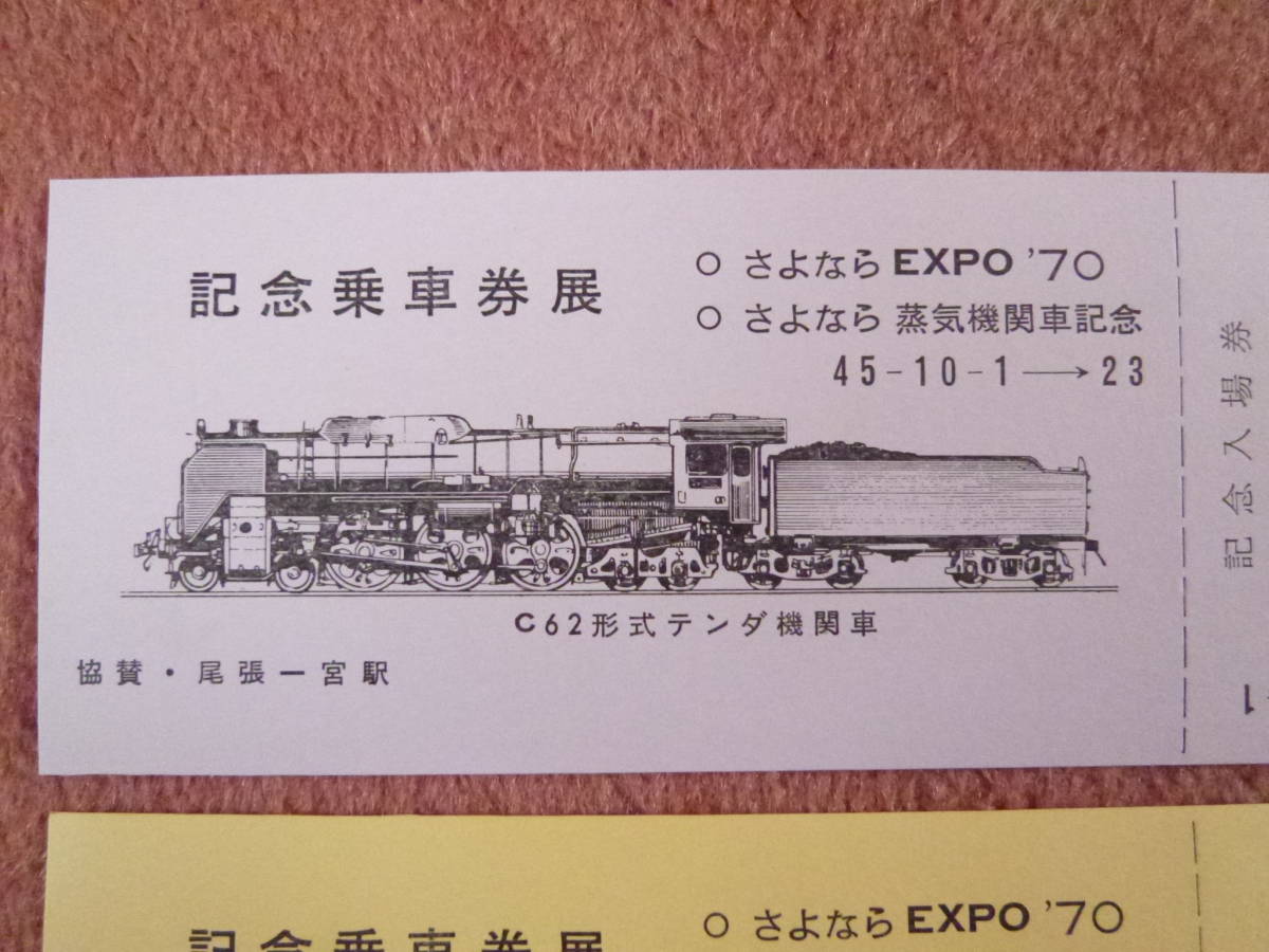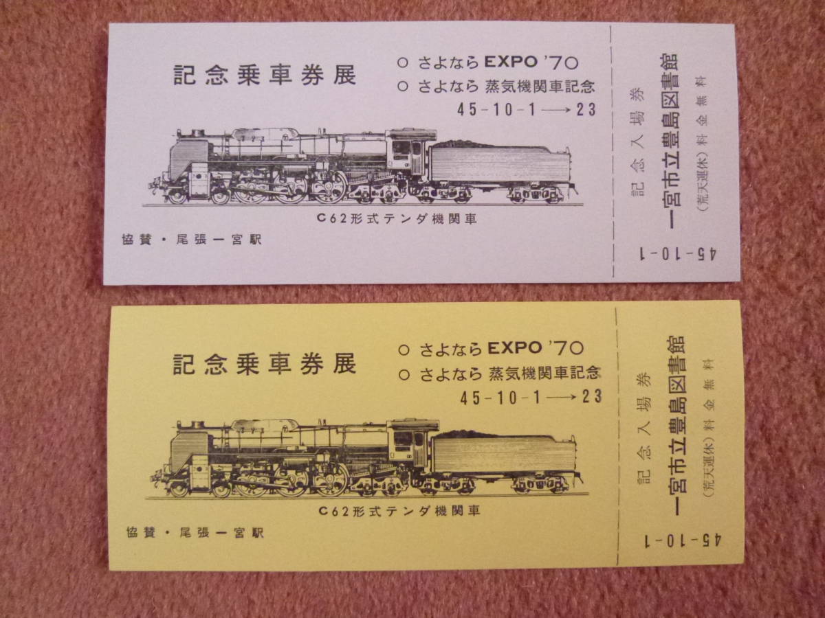 愛知県一宮市立豊島図書館記念乗車券展記念入場券2枚セット(国鉄/東海道本線/尾張一宮駅/昭和45年10月1日/EXPO'70/さよなら蒸気機関車)