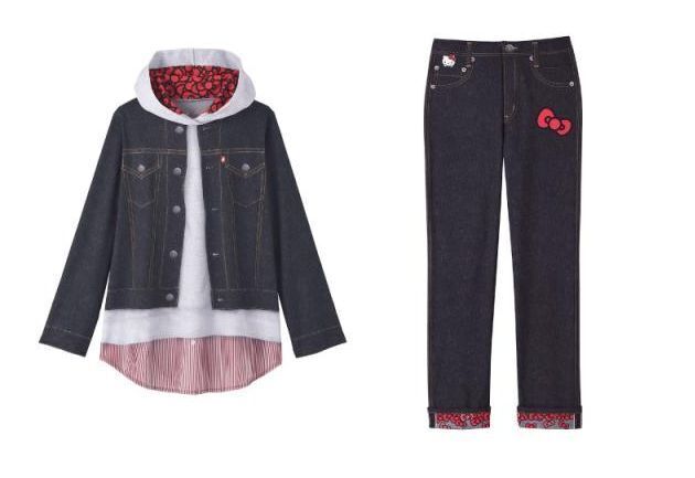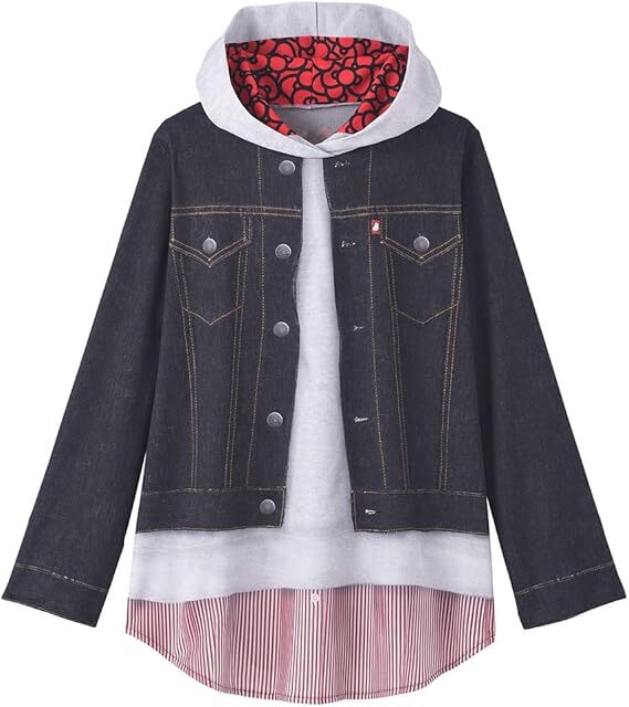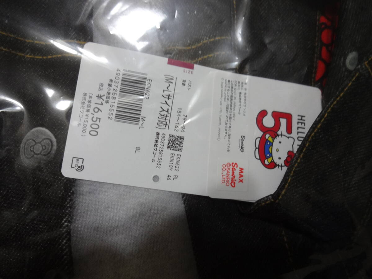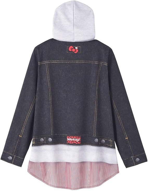 M~L ハローキティ50周年★ワコール カルソン コラボ トップス バーカー アウター長袖チュニック新品タグ付Gジャン重ね着デニム風BL