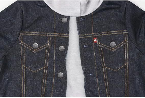 ・Gジャン重ね着風パネルプリント柄、フード付き。