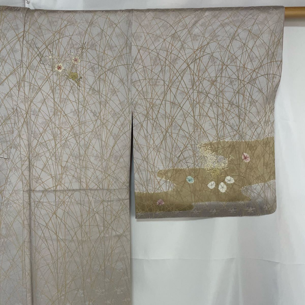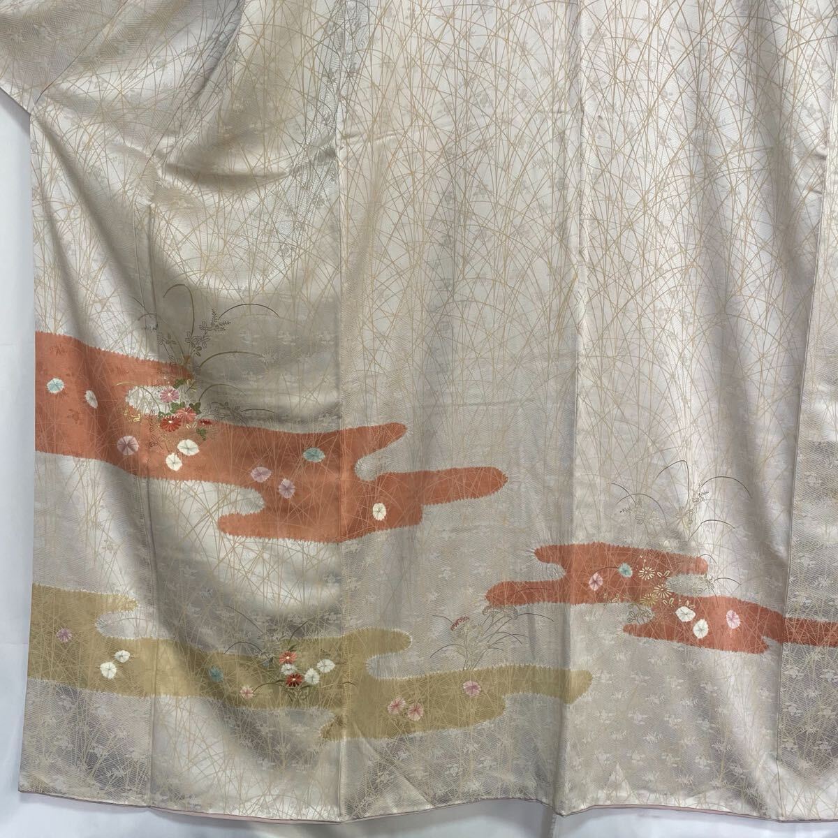 ・とても華やかで美しい付け下げのお着物です。 ・左前身頃、後身頃、右後袖に金彩加工の色褪せがあります。(写真 9枚目) ※たたみジワあり ・まだまだ着用していただけますので、おすすめのお着物です。 ・お安く出品致しますので、是非この機会にいかがでしょうか。 |
