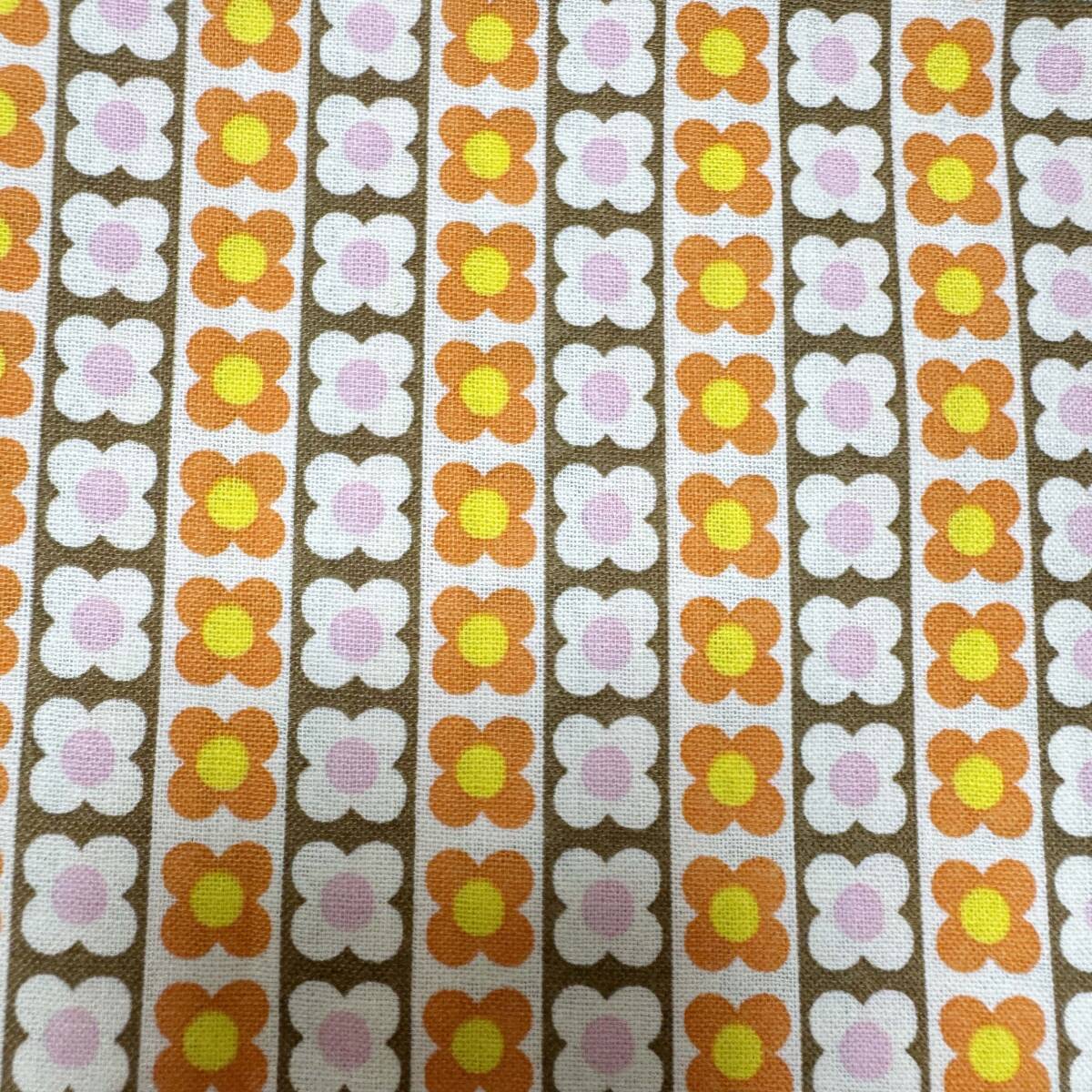 昭和レトロな花柄のシーチング生地1mパッチワーク風はぎれ布モカブラウン&オレンジ