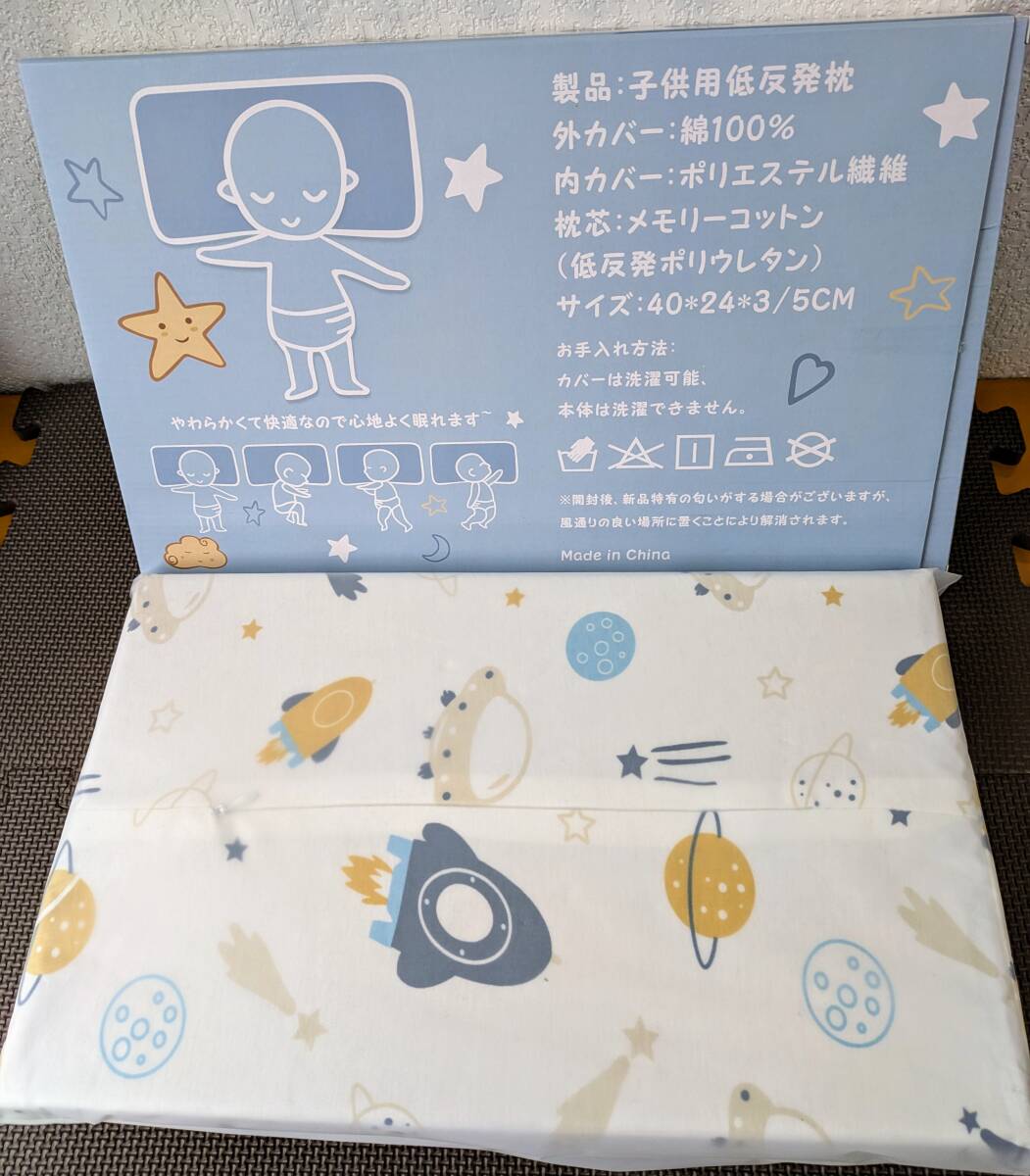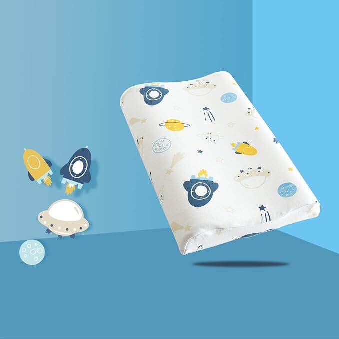 mj-G965★FAYOSA 子ども用まくら 子供用低反発枕 メモリーフォーム素材 通気 快眠 高さ調整 向き癖防止 寝姿を矯正 カバー綿100%洗える 男女兼用 1~6歳適用 40*24*3/5cm 宇宙船図柄