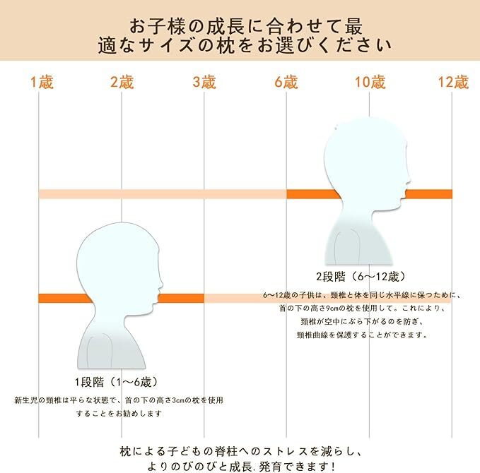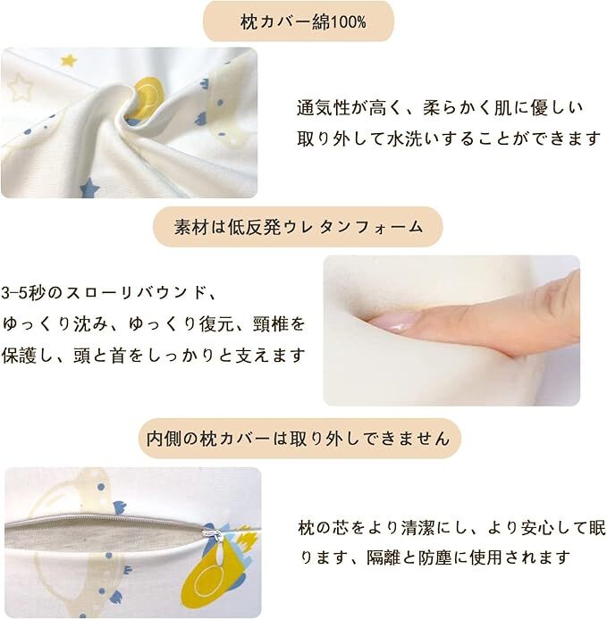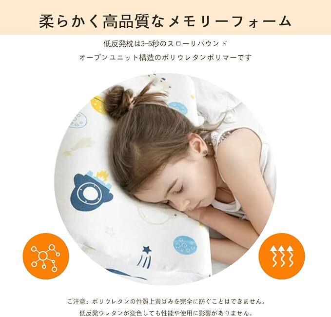 子ども用まくら 低反発枕 メモリーフォーム素材 通気 快眠 高さ調整 向き癖防止 寝姿を矯正 カバー綿100%洗える 男女兼用 1~6歳適用