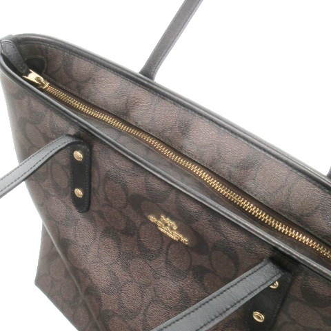 コーチ COACH トートバッグ ハンドバッグ レザー ジップ開閉 シグネチャー ロゴ 総柄 茶 ブラウン F58292 /AH12 ■GY18 レディース