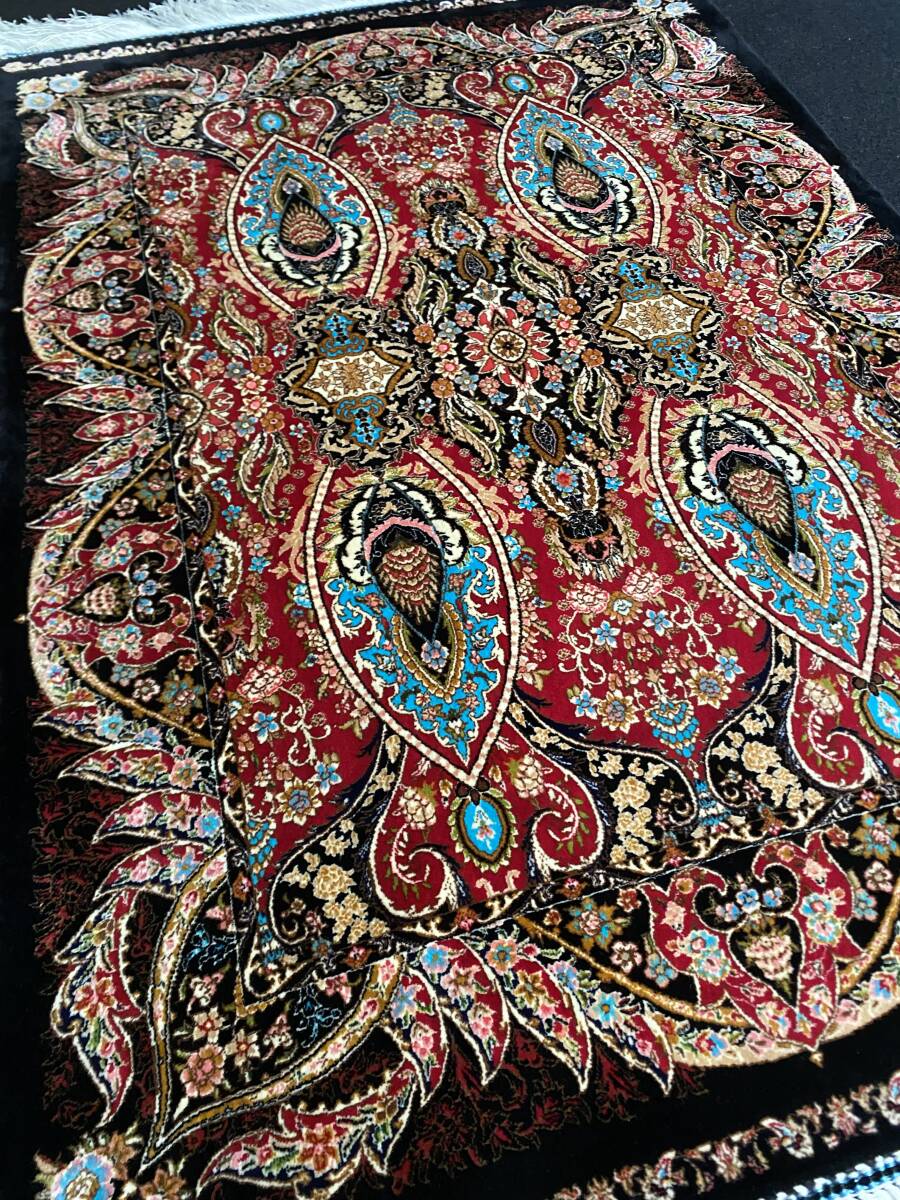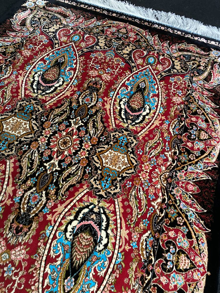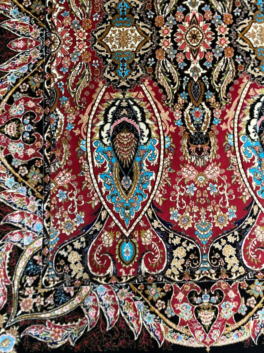 クム絨毯の歴史は1930年頃からと浅く、最初はウール絨毯を、後にシルク絨毯を織るようになりました。絹の産地としても有名なクムで、現在作られるほとんどの絨毯は100%シルク製です。