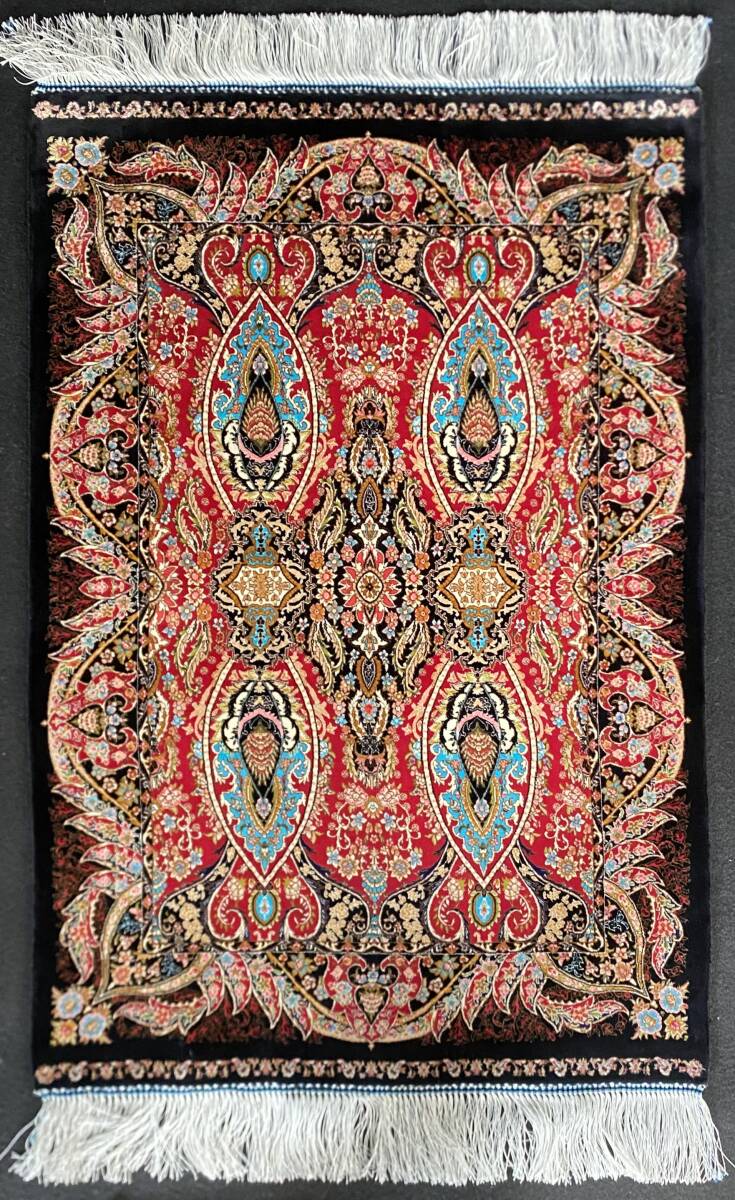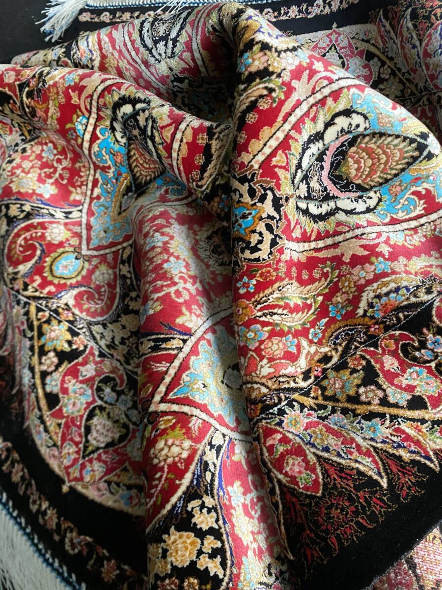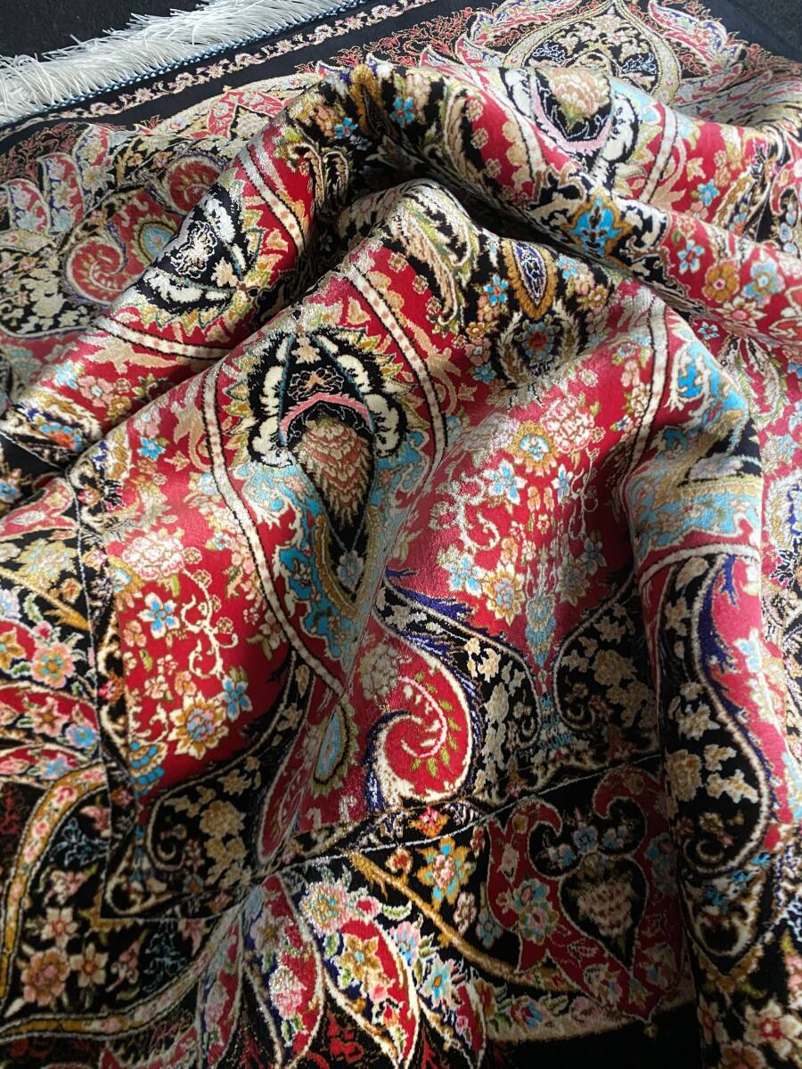 クム絨毯の歴史は1930年頃からと浅く、最初はウール絨毯を、後にシルク絨毯を織るようになりました。絹の産地としても有名なクムで、現在作られるほとんどの絨毯は100%シルク製です。