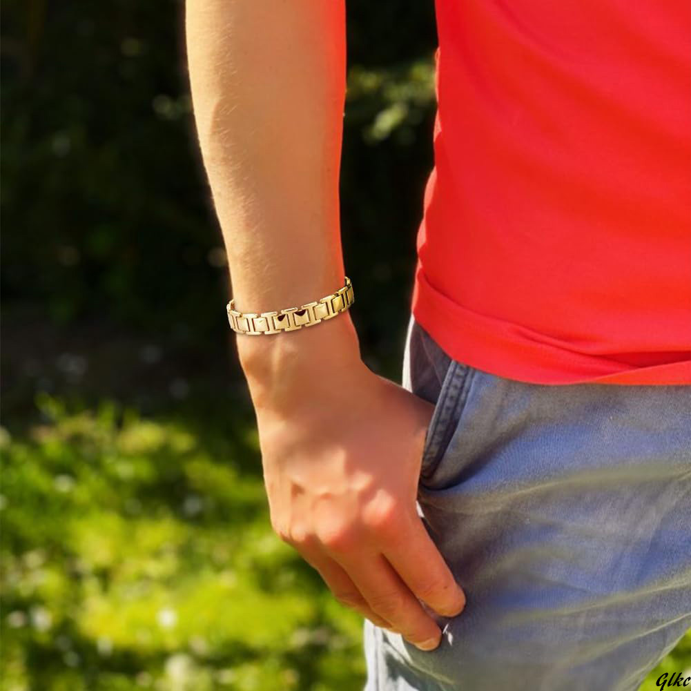 15粒の高純度(99.999%)ゲルマニウムを内蔵した、機能性とデザイン性を兼ね備えたメンズ向けブレスレット。