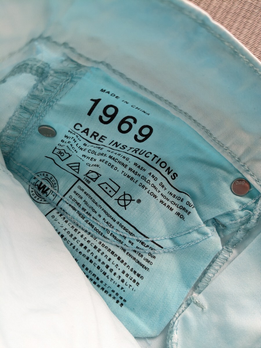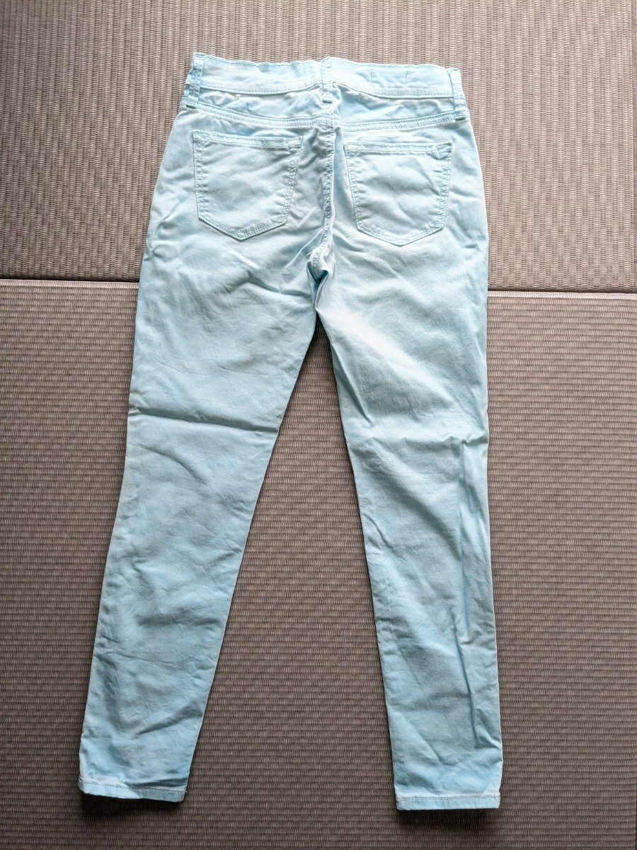 ⇒平置きで、ウエスト32cm、股上21cm、股下64cm、裾幅12cm