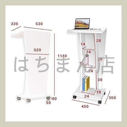 高品質の実木製演台で、快適でしっかりとした設計が床に安定感をもたらします。サイズは高さ114cmで、デスクトップのサイズは33cm x 53cmです。