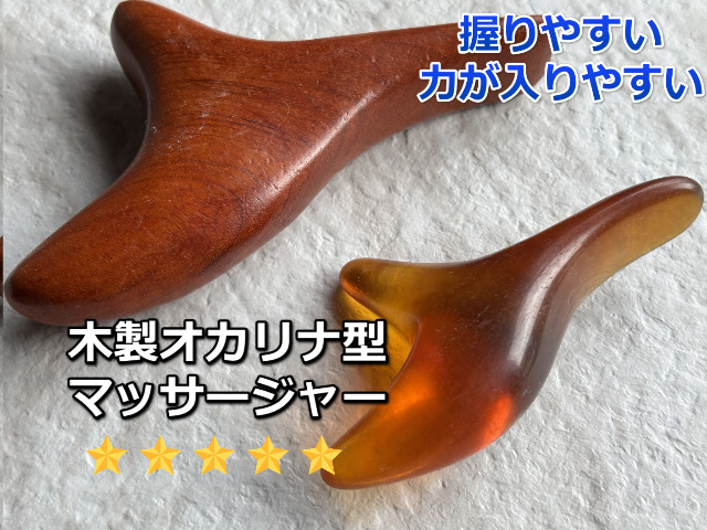 ●新品・訳あり★木製 マッサージ棒 オカリナ ツボ押し 足裏反射区マニュアル付き 2個セット (code4)