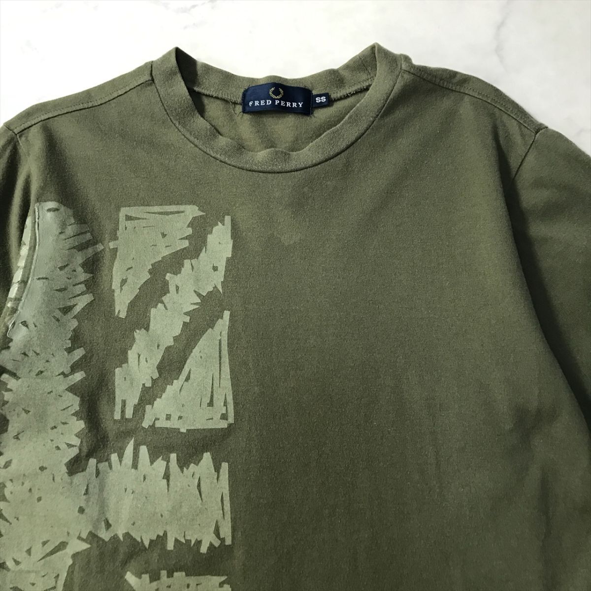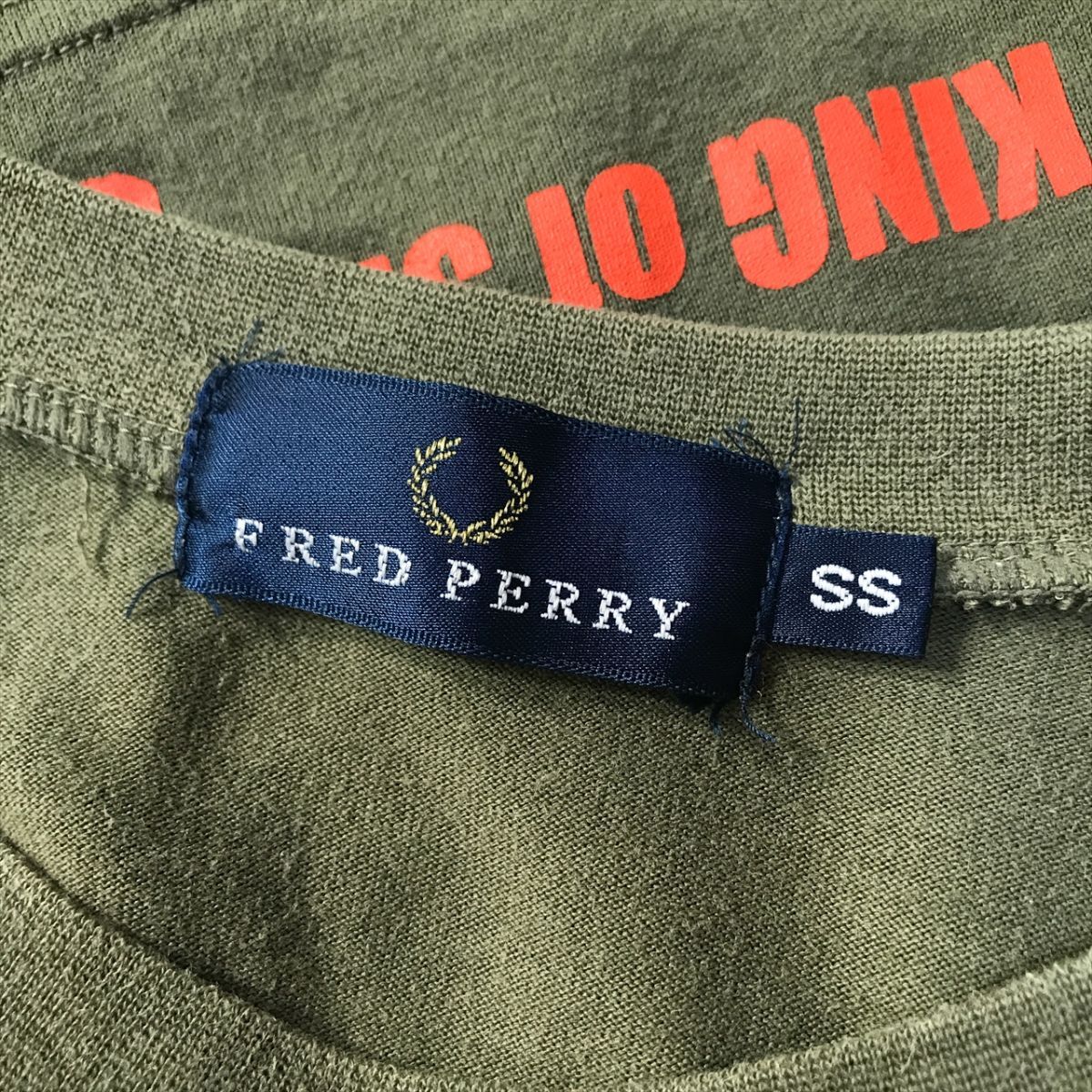 《良品◎》FRED PERRY フレッドペリー★デザインTシャツ*カットソー*カーキ*サイズSS(MS4022)◆YP
