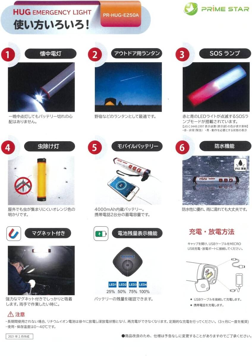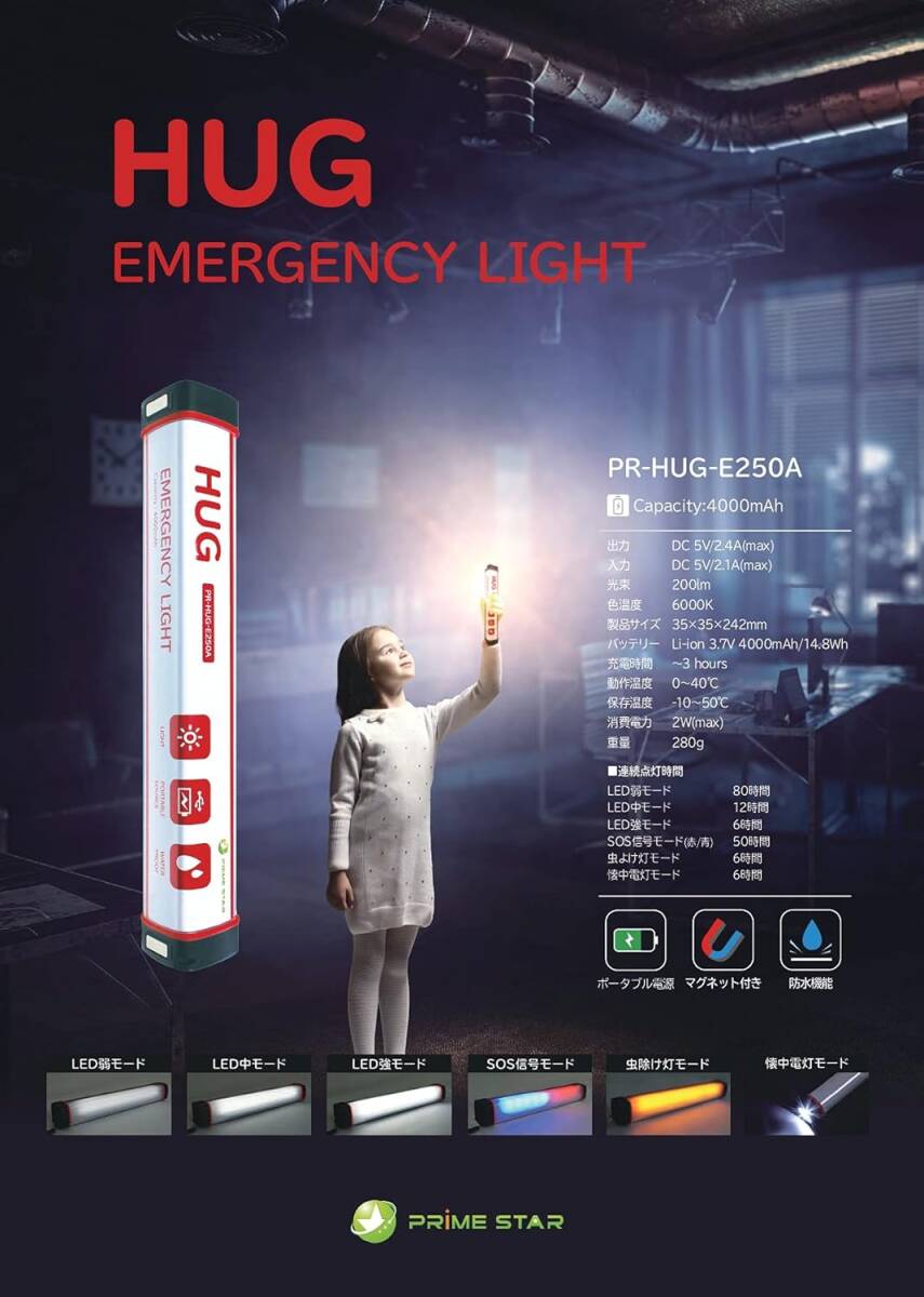 プライムスター|防災用防水ライト リチウムイオン蓄電池内臓 PR-HUG-E250