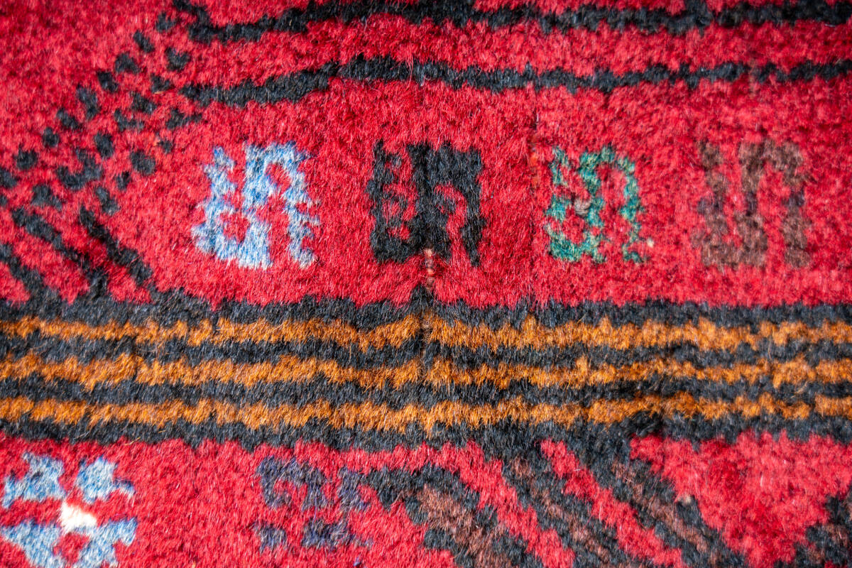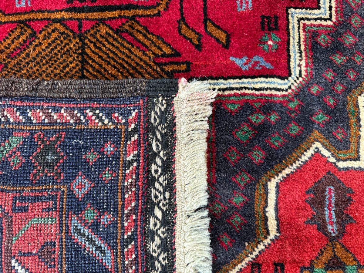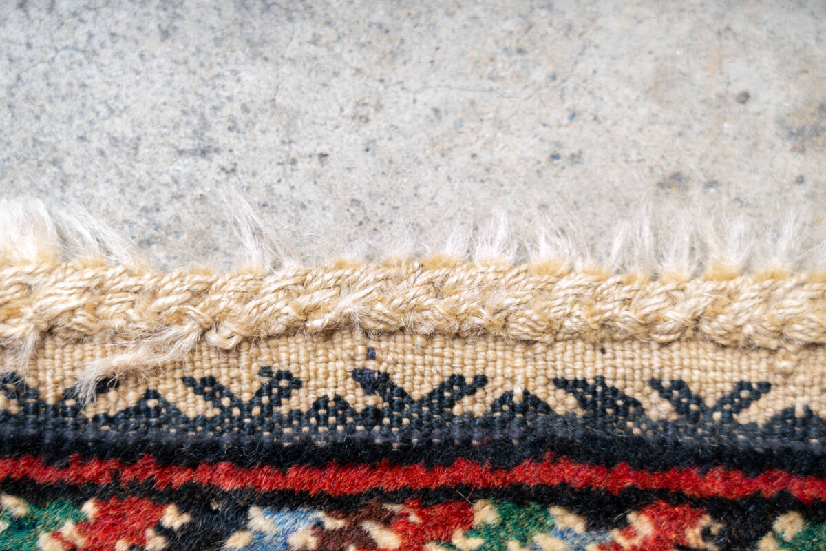 上部のフリンジにウールの抜け、中央に線状の擦れが見られますが、ヴィンテージラグの味としてお楽しみください。写真をご確認ください。