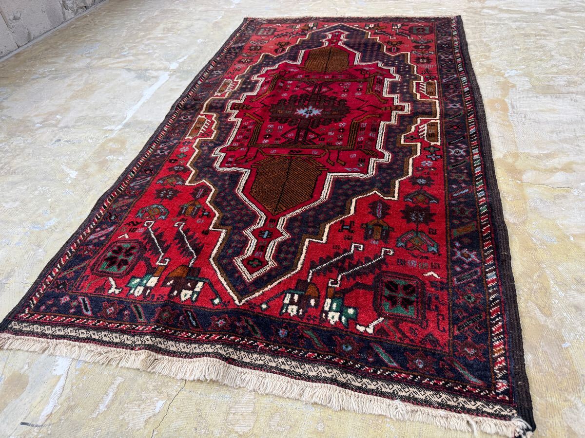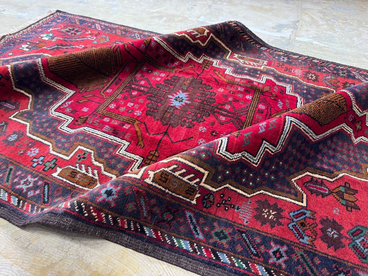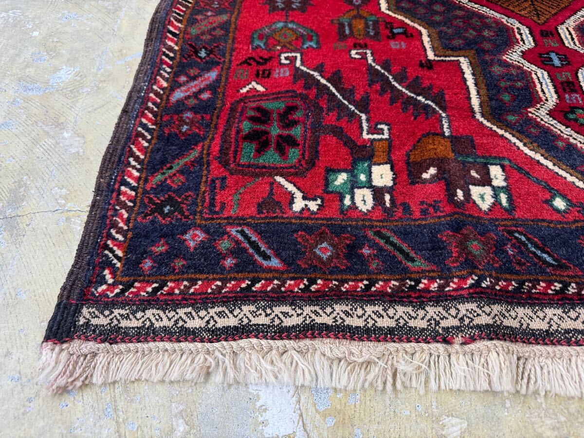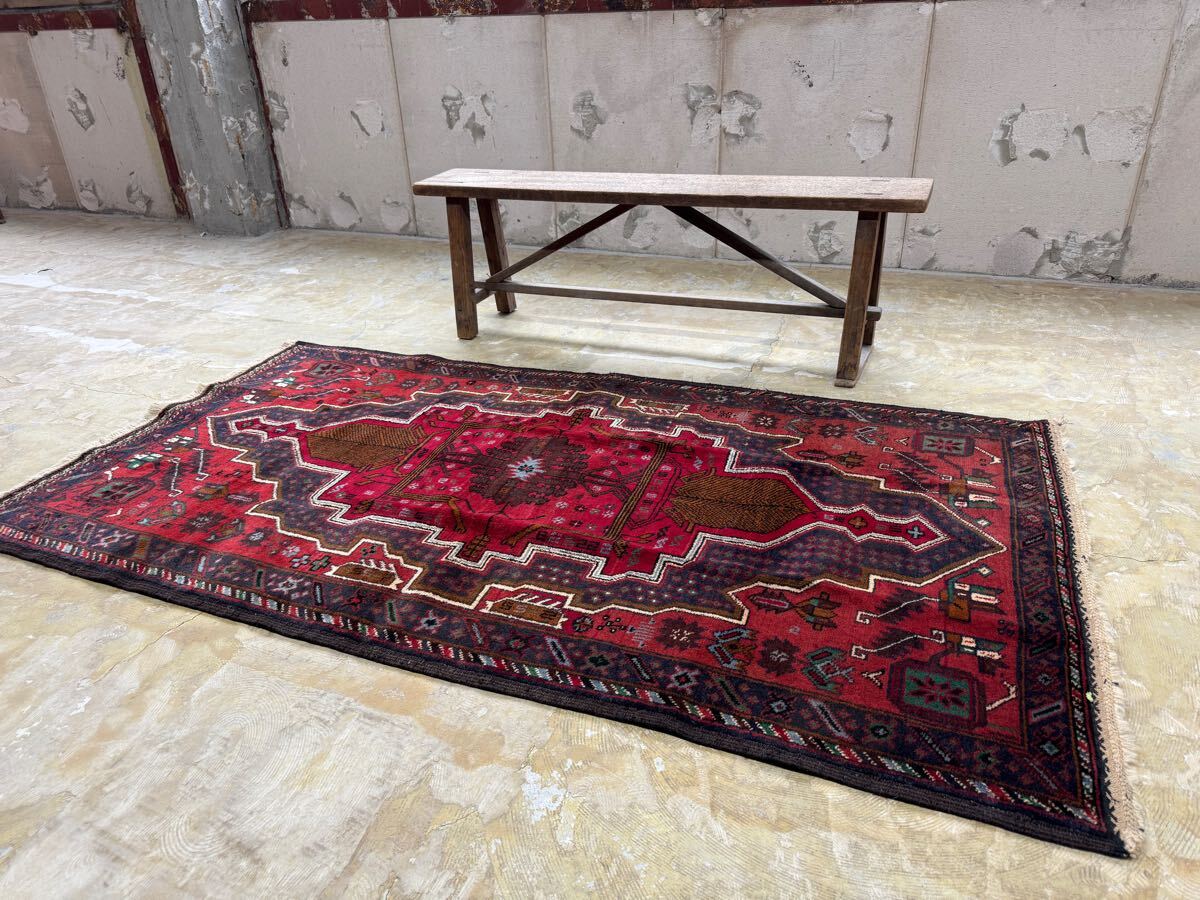 ¥35,000→¥25,000 トライバルラグ ヴィンテージ家具 190×104cm 手織り 絨毯 カーペット ヴィンテージ ラグ ペルシャ絨毯