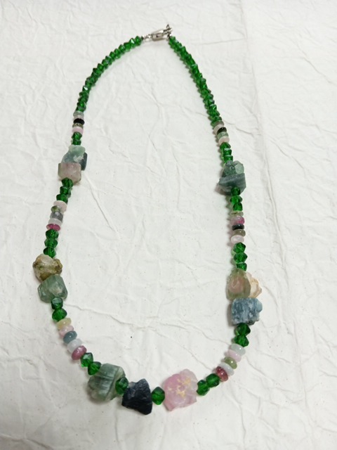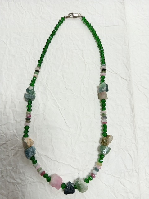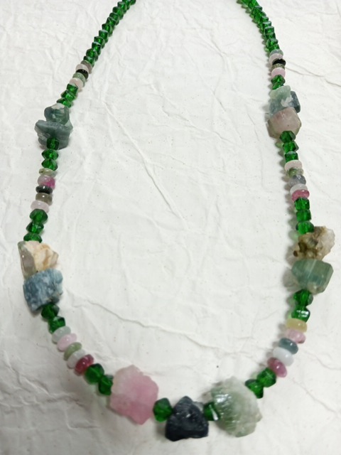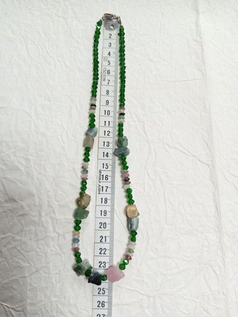 未使用経年品ビンテージ ガーナのアクセサリース トーン&ガラス細工コンビネックレス