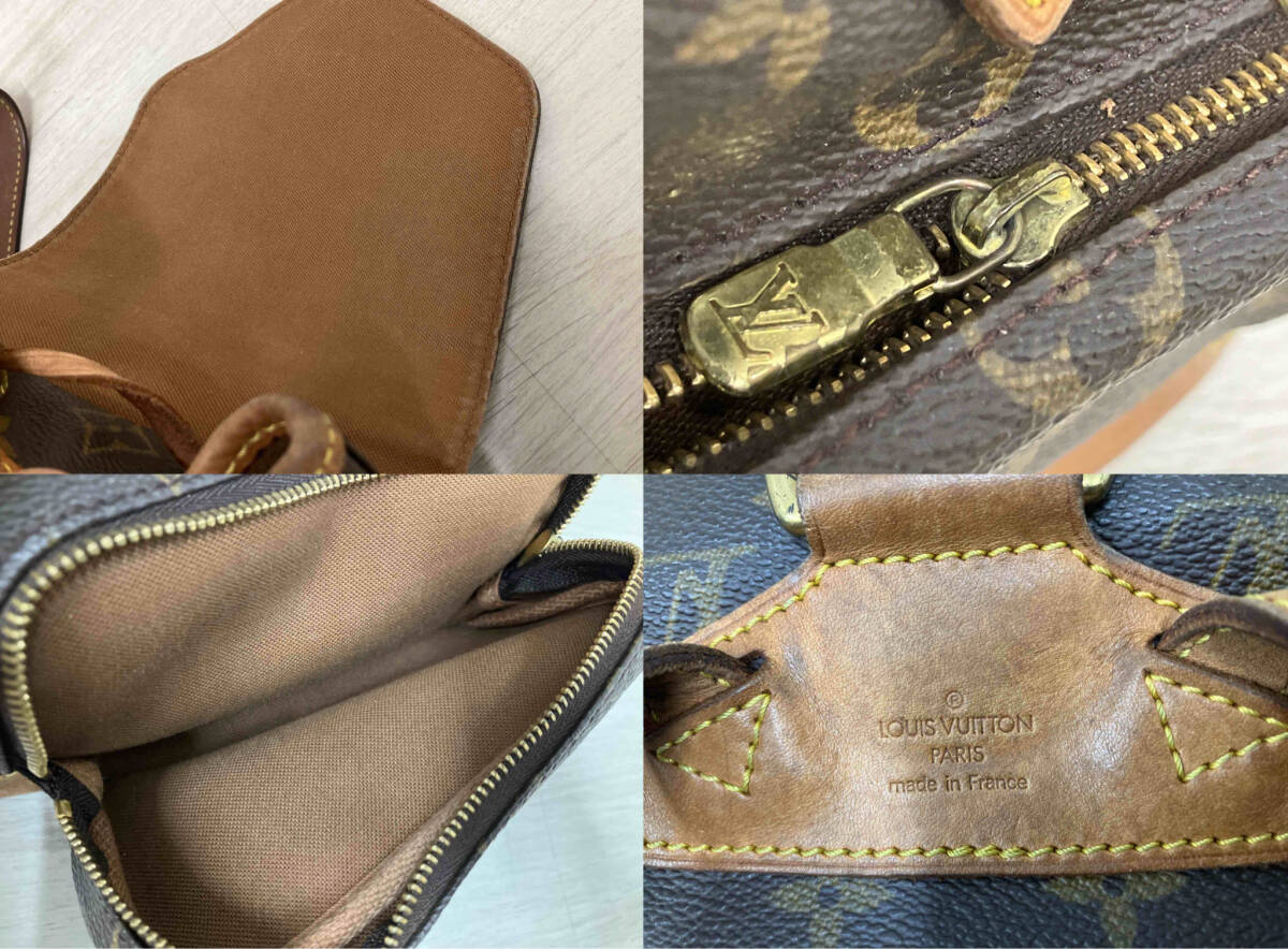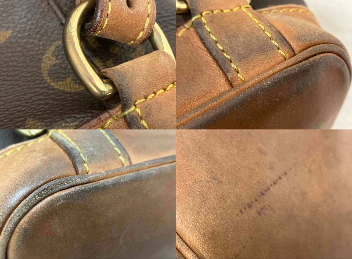 ヌメ革にシミ、擦れ、黒ずみあり。角擦れあり。内側に擦れあり。金属傷あり。 | ||||||