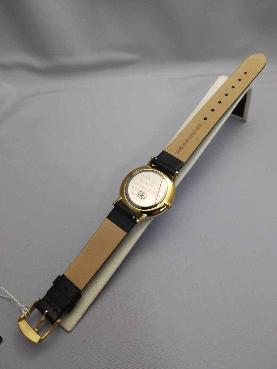 状態:新品 型番:2043B-T01 ムーブメント:クォーツ カラー:文字盤(ゴールド)、ベルト(ブラック) 素材:ケース(ブラス)、ベルト(レザー) ケースサイズ:(H×W)約33mm×約33mm(竜頭及びラグ含まず) ベルト幅:約16mm ベルトサイズ:腕回り最大約18.5cm 付属品:ギフトボックス |