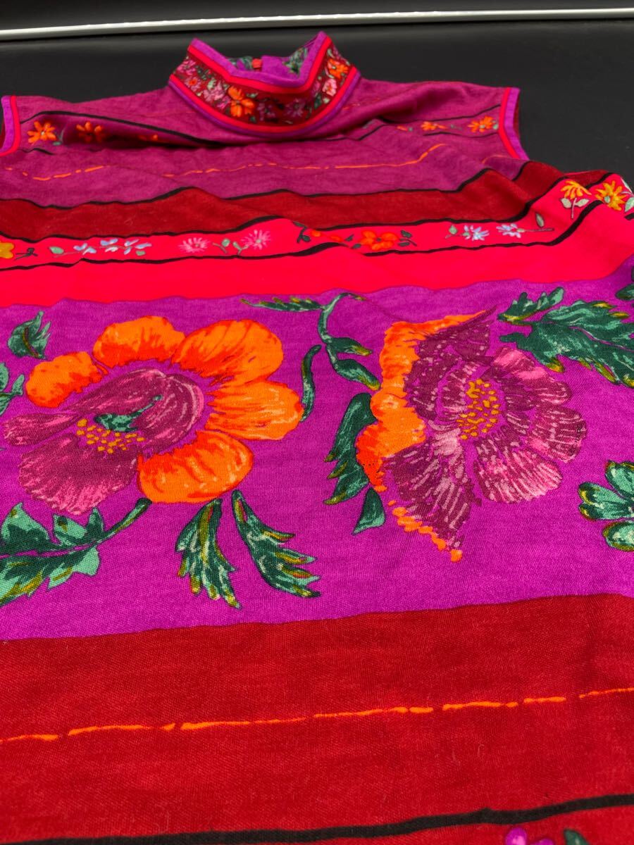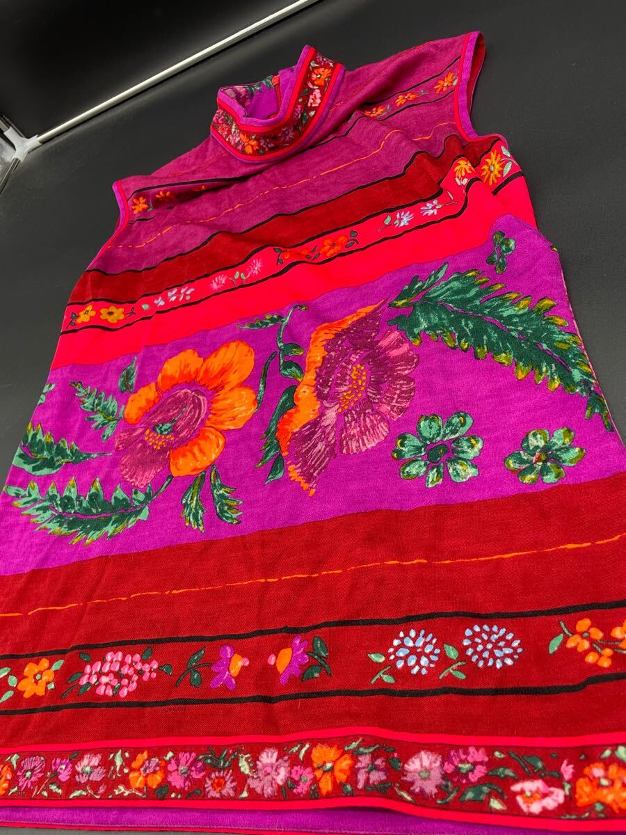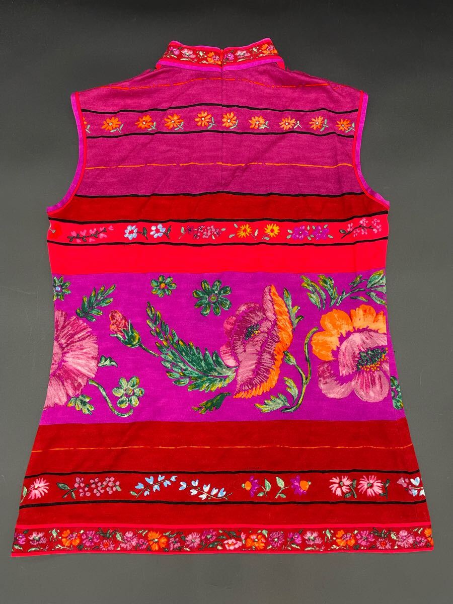 フランスの高級ブランド【LEONARD PARIS(レオナール パリ)】のノースリーブシャツです。上品で華やかな花柄デザインが印象的な一着。落ち着いた赤・紫を基調とし、エレガントな装いにぴったりです。