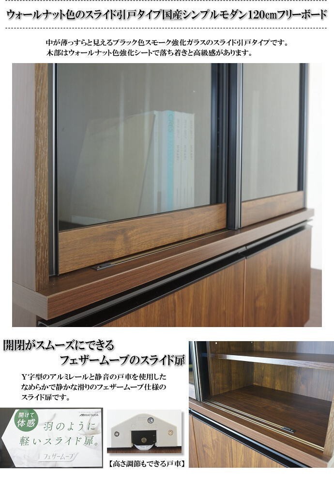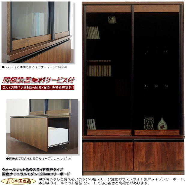| 【商品名】 | ウォールナット色のスライド引戸タイプ国産シンプルモダン120cmフリーボード 開梱設置無料 | |