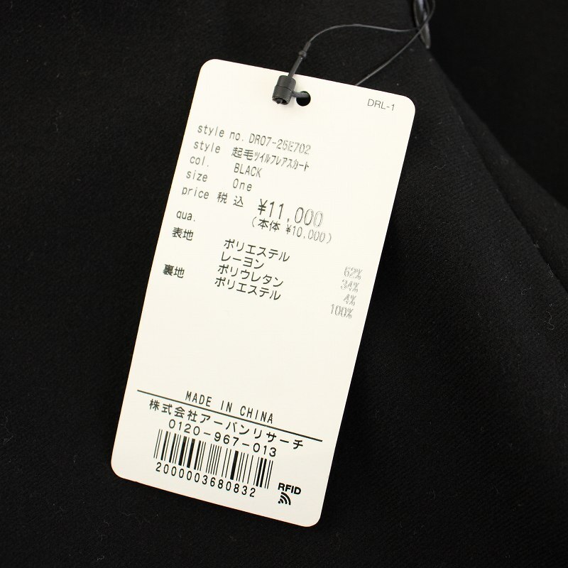 未使用品 アーバンリサーチ ドアーズ URBAN RESEARCH DOORS 起毛ツイルフレアスカート ロング イージー One 黒 DR07-25E702 レディース